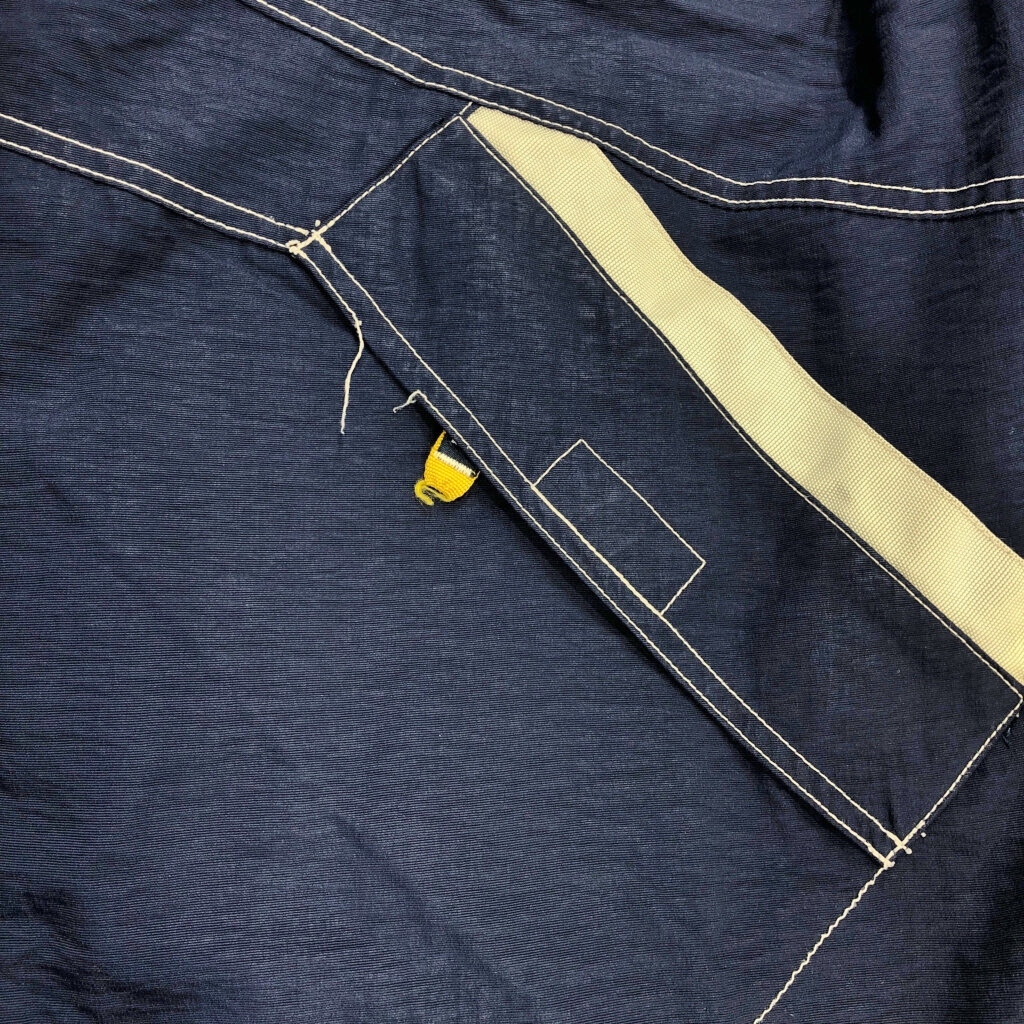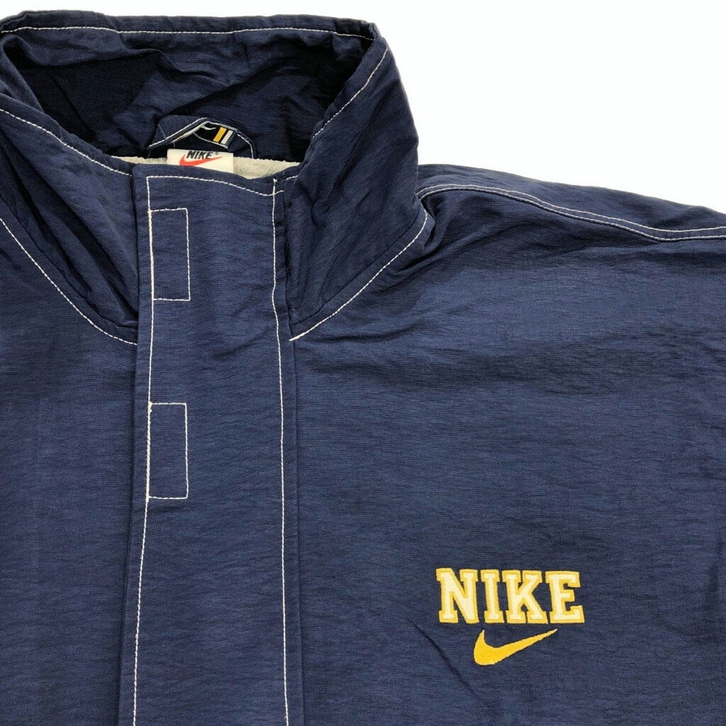 [商品管理番号] V0225 [ブランド] NIKE/ナイキ [サイズ] [実寸サイズ] 肩幅:約62cm 着丈:約78cm 身幅:約72cm 袖丈:約59cm [主な素材] 表地 : ナイロン 裏地 : 13897 [色] ネイビー [仕様] 90年代 裾ドローコード、裏地フリース スポーツ [状態] 汚れ:袖先、腹部裏地、背中裏地 特記事項:糸ほつれ、ステッチ抜け | |||