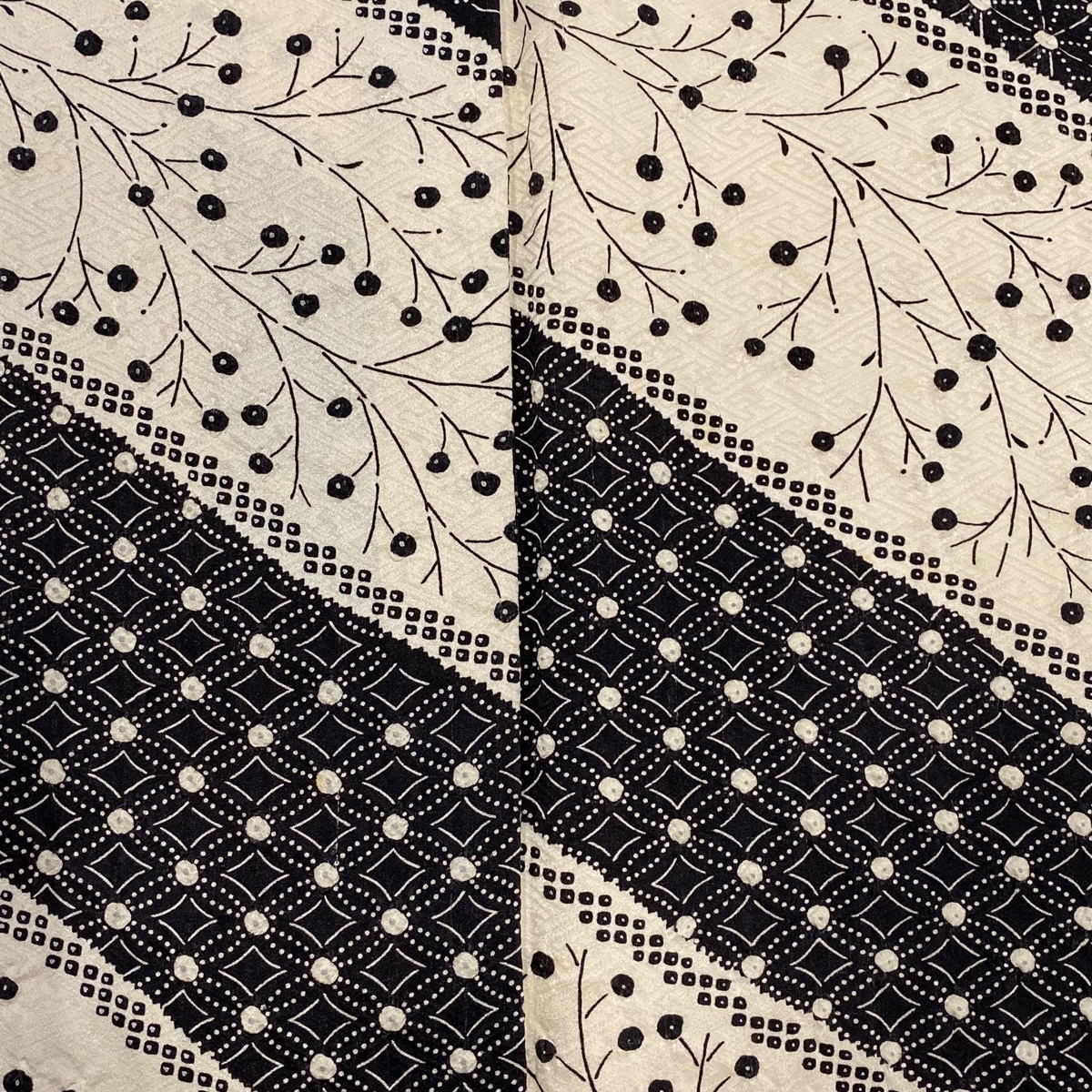 | 小紋 秀品 有職文様 葉と実 絞り 銀彩 クリーム 袷 身丈157 裄丈63 S 正絹 【中古】 |