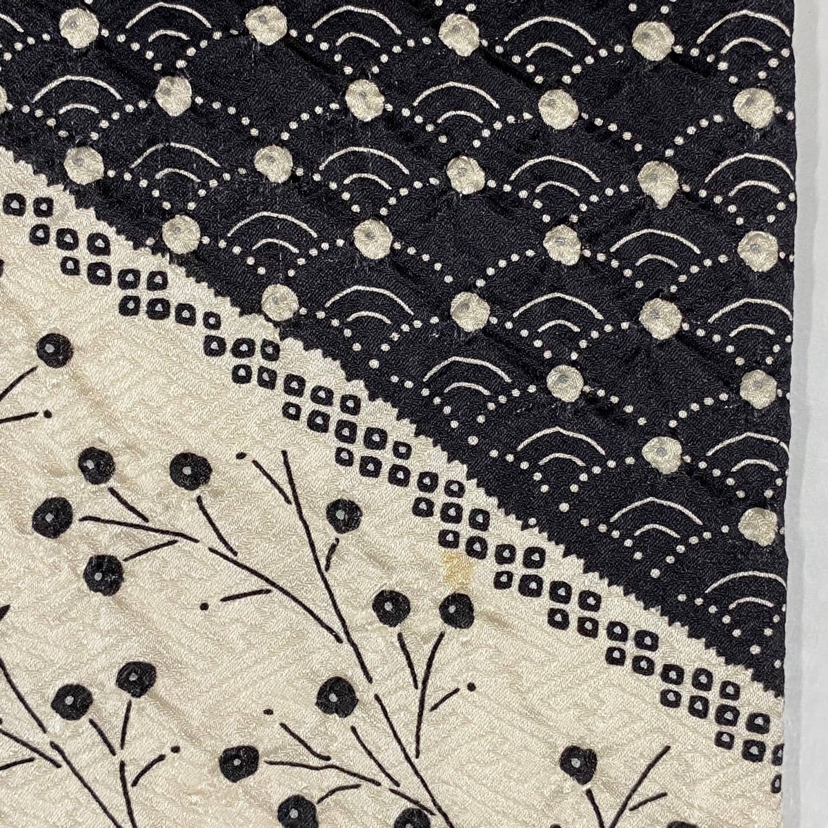 | お洒落着として楽しめる小紋でございます。 お稽古や観劇、同窓会や友人との食事会など様々なシーンで楽しめます。 ※身丈・裄丈の縫込みの長さは測っておりません。 右後袖と左前袖にシミ、両袖口中に汚れ、衿周りに薄汚れがございます。 裏地臀部付近と胴裏にシミ、裏地両脇に汗シミがございます。 ご購入の際はその点ご留意ください。 ※なお、厳しく商品の状態確認を行っておりますが、記載の汚れ以外にも見落とし箇所がある可能性がある旨ご了承いただけますと幸いです。 沢山の商品の中からご覧いただき誠にありがとうございます。 |