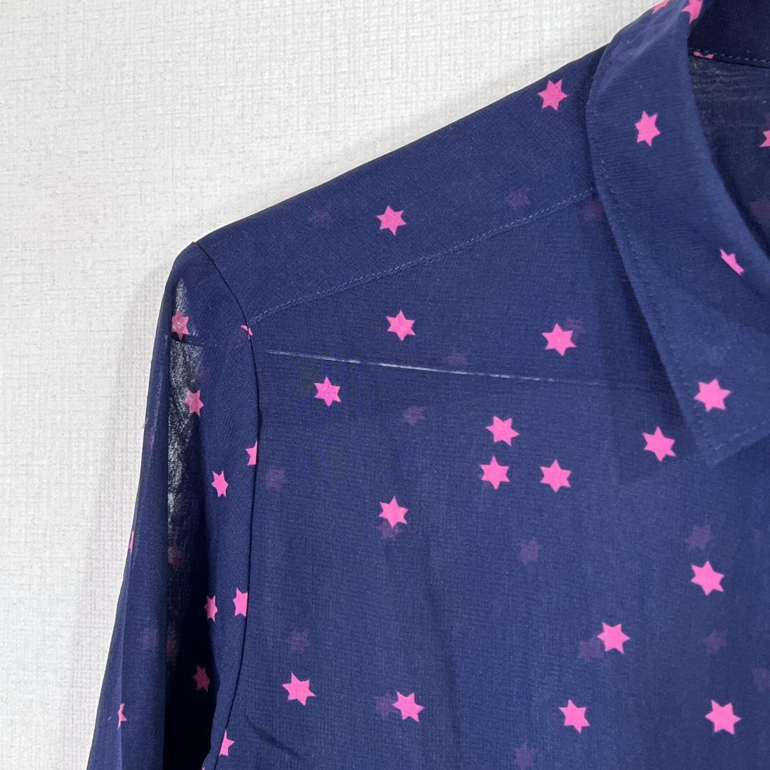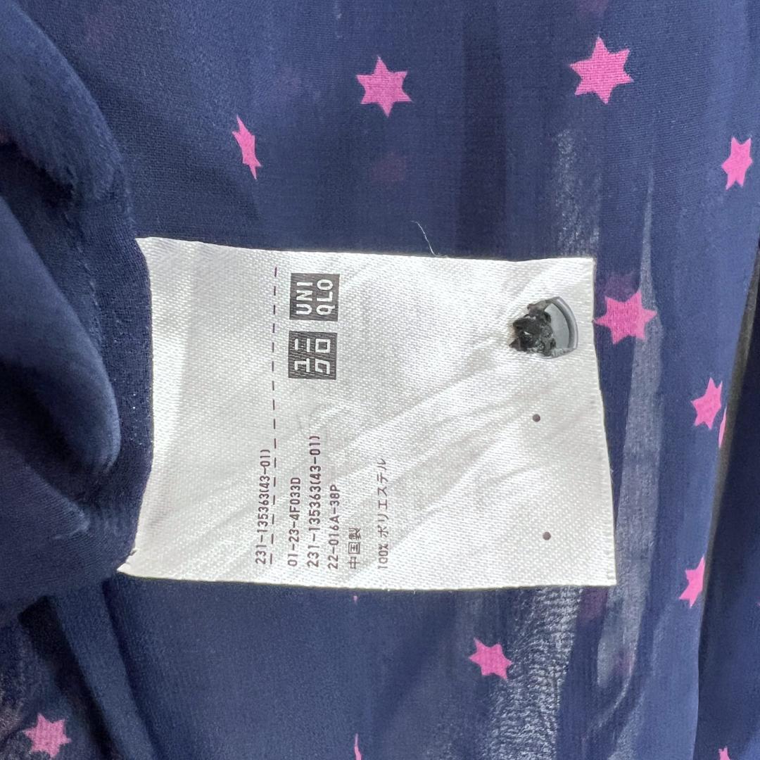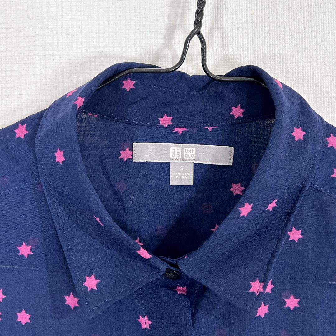 【UNIQLO】ユニクロ ネイビー 星柄 長袖 シースルーブラウス シアーシャツ トップス 透け感あり レディース Sサイズ【a002】