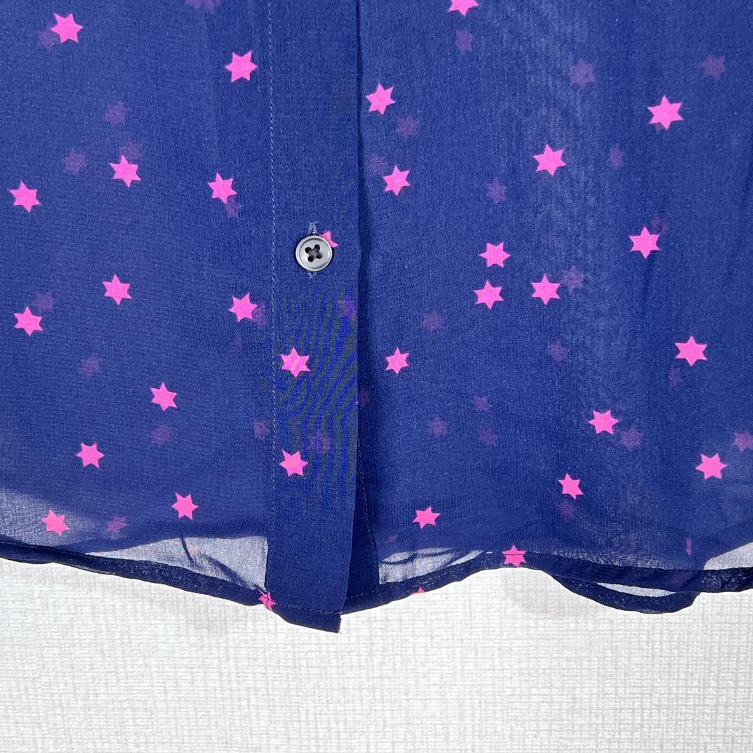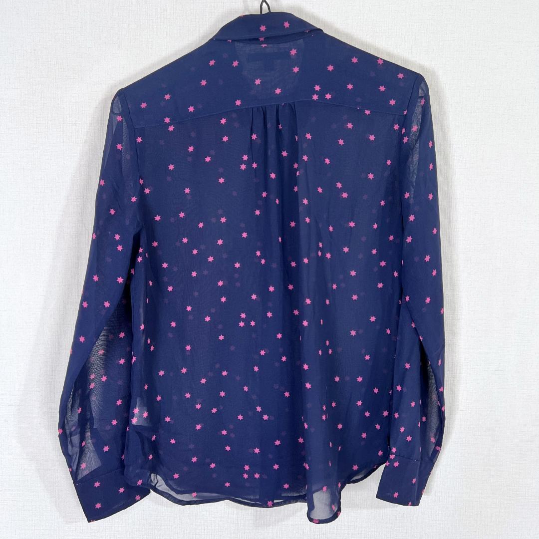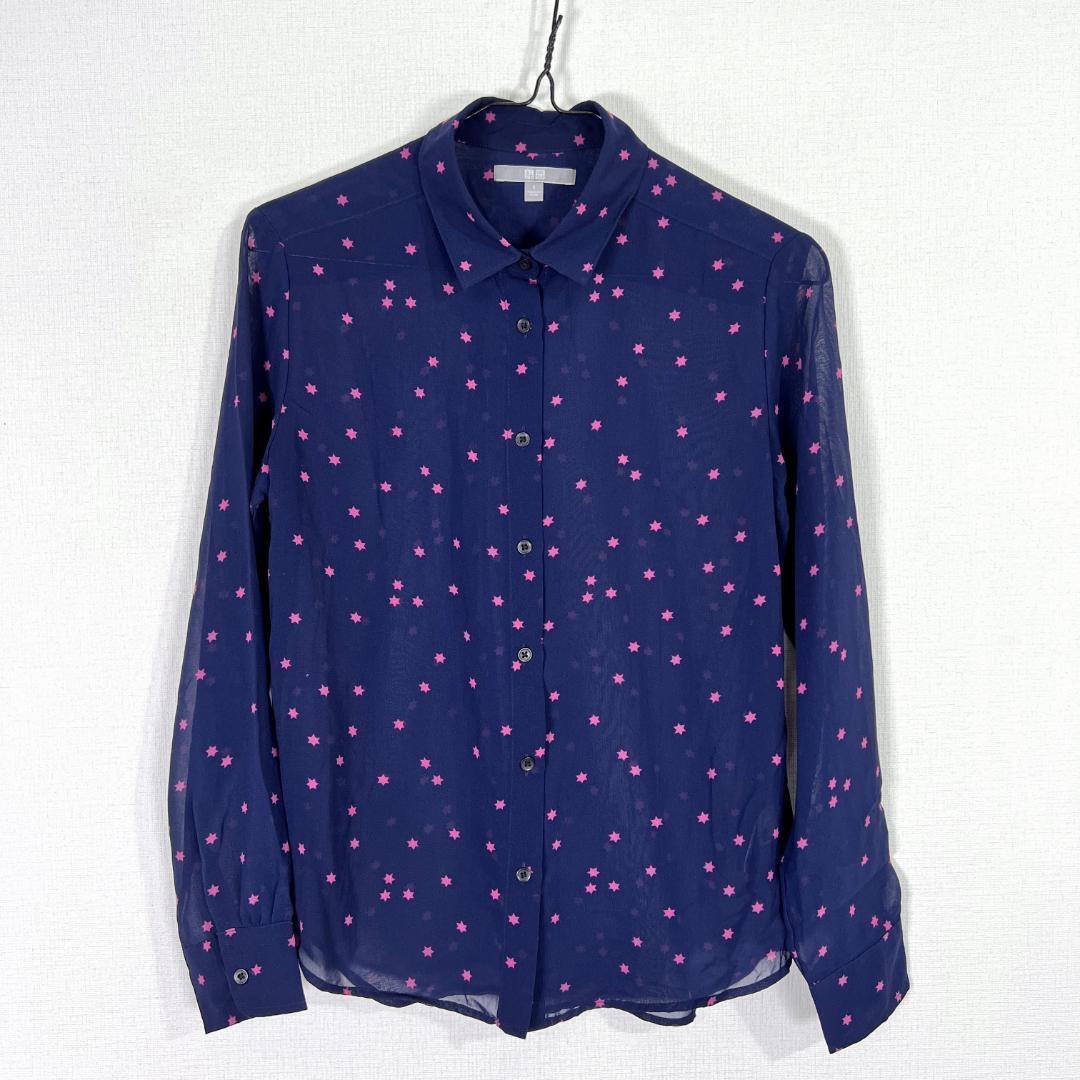 【UNIQLO】ユニクロ ネイビー 星柄 長袖 シースルーブラウス シアーシャツ トップス 透け感あり レディース Sサイズ【a002】