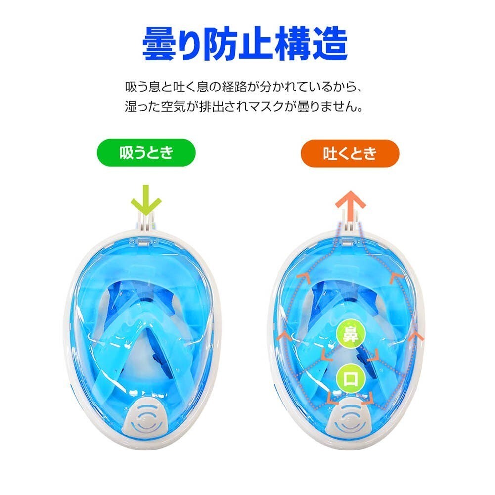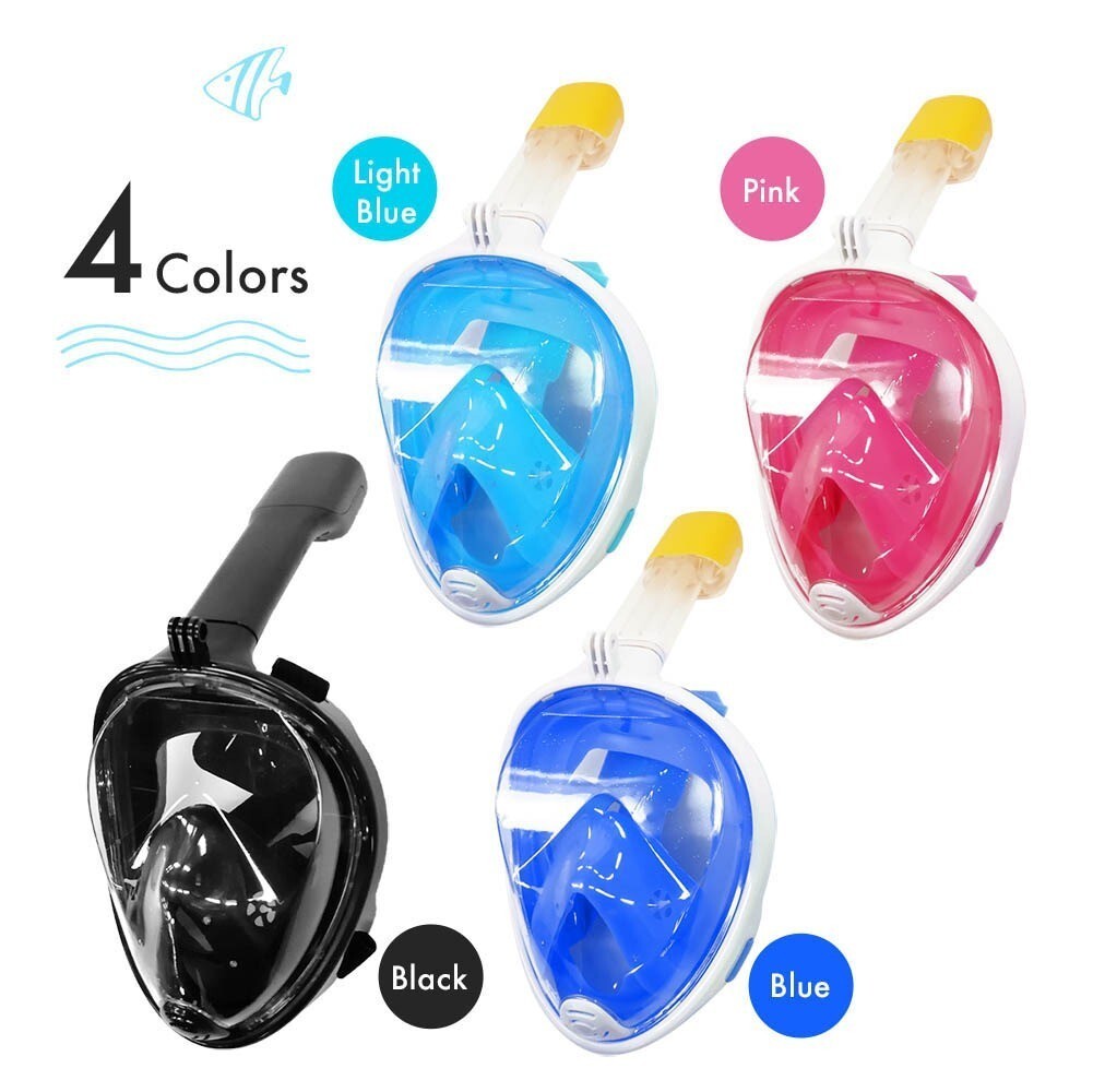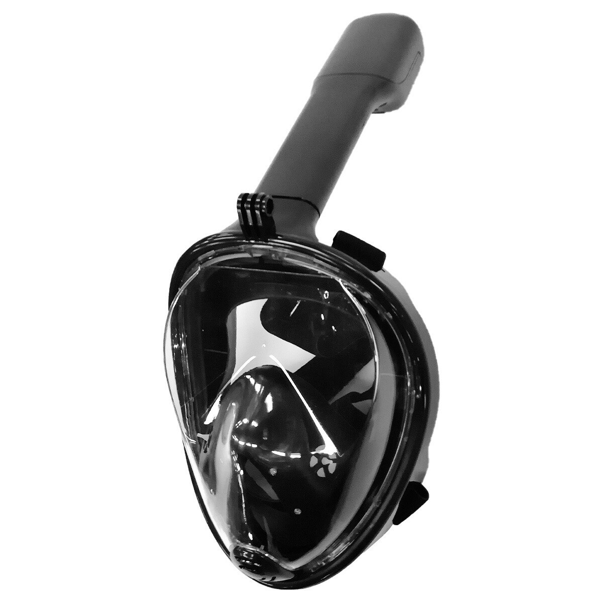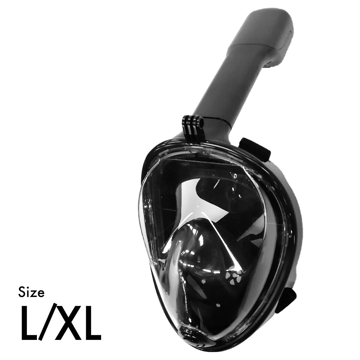 シュノーケルマスク フルフェイス型 シングルチューブ 180度視野 ダイビング 水中メガネ ゴーグル スポーツカメラ取付可能 黒 L XL