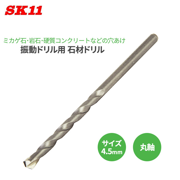 SK11 石材ドリル 4.5mm 丸軸 振動ドリル用 穴あけ 硬質コンクリート 石材 ミカゲ石 硬質瓦 PC板 ドリル