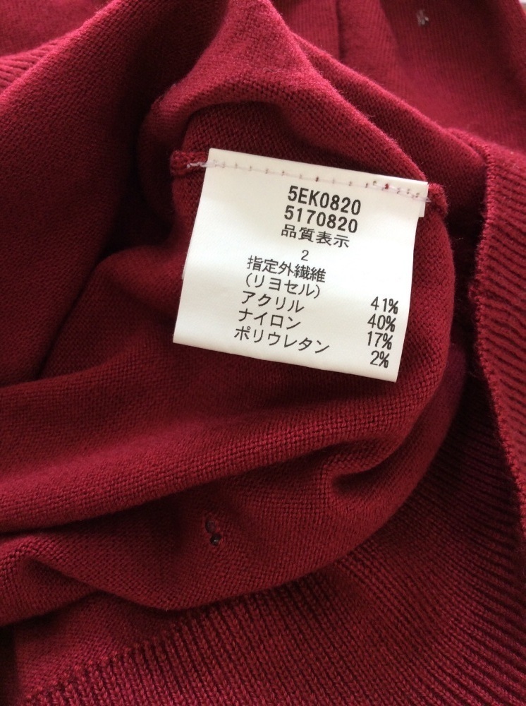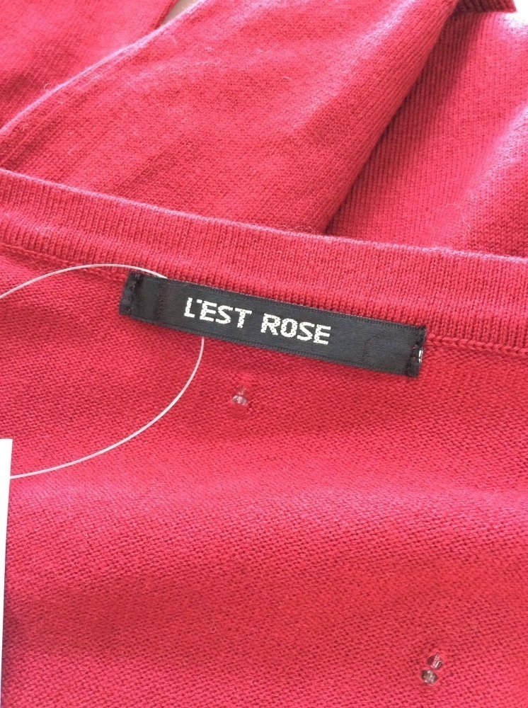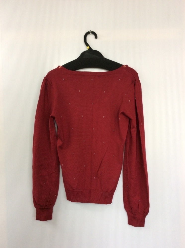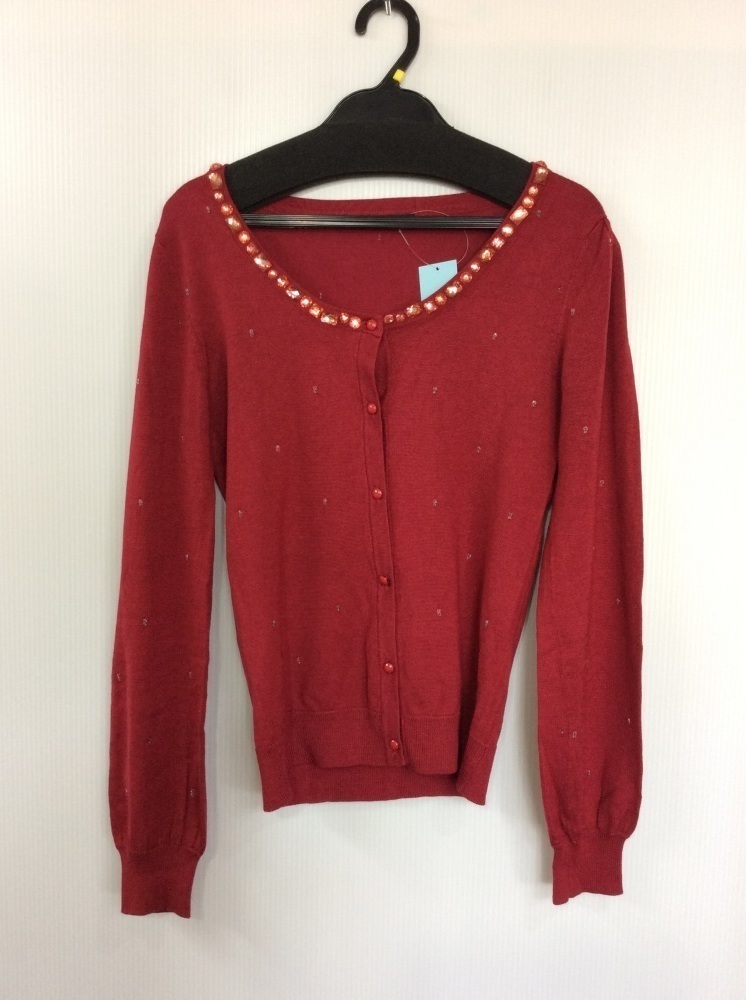 | 管理番号:124303 レストローズ 赤×ビーズ飾りニットカーディガン 表示サイズ: 2 実寸(参考)