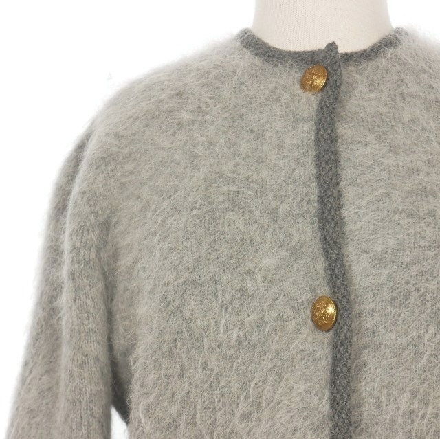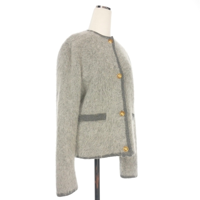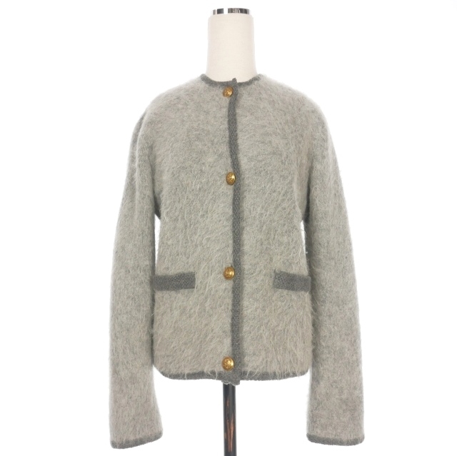 ミラオーウェン Mila Owen 24AW 金釦短丈アルパカニットカーデジャケット ファー カーディガン 長袖 0 グレー 灰 09WNJ244003 レディース