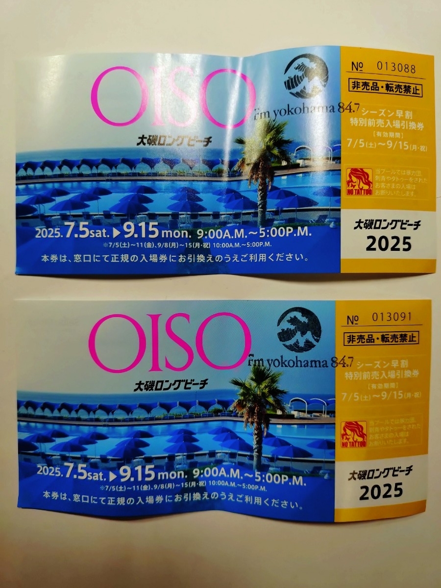大磯ロングビーチに行く予定日が雨模様で中止となり不要となったため出品しました。夏休み最後のレジャーとして如何でしょうか?