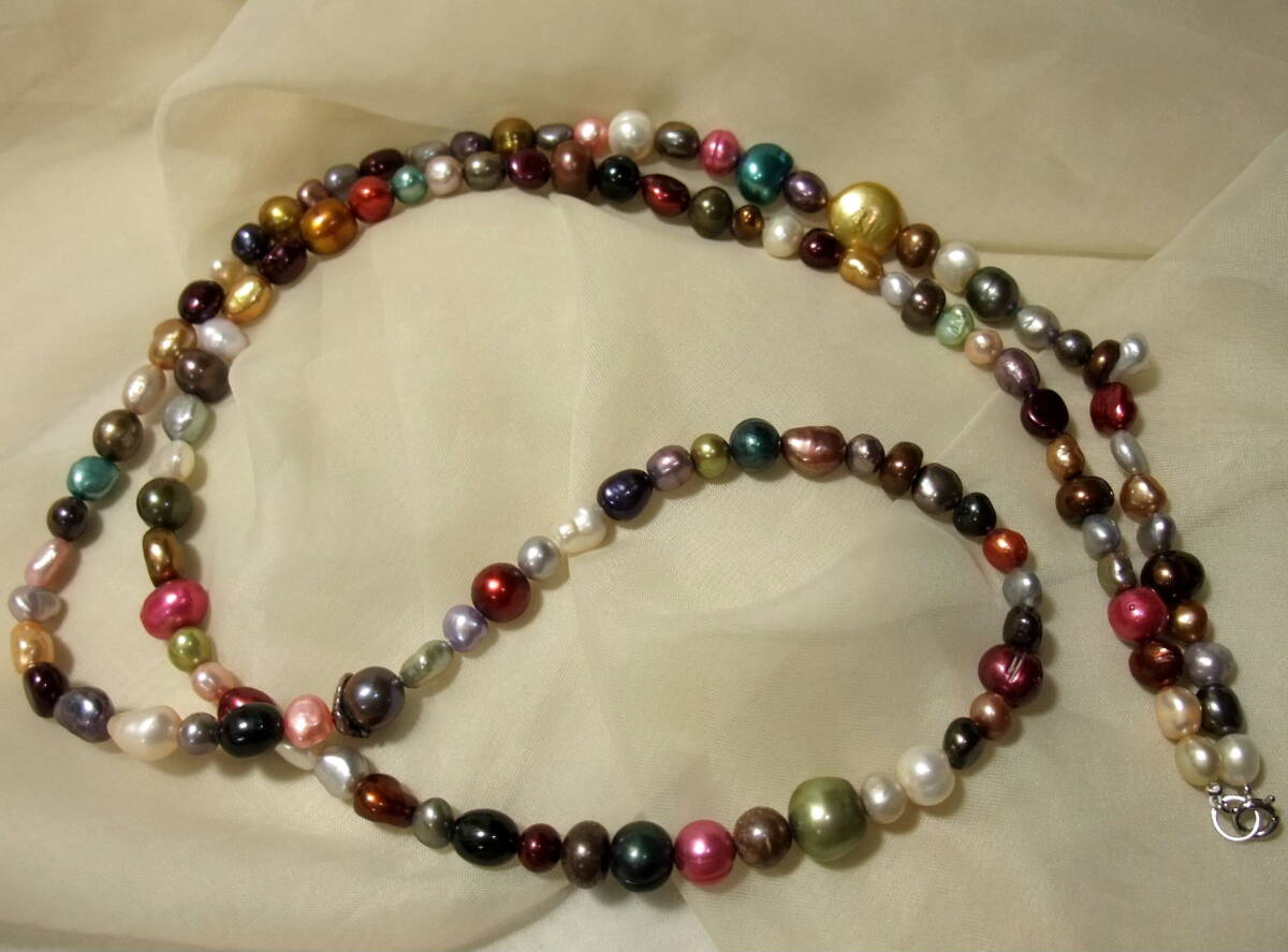 190‐8 綺麗!極上テリツヤルースも!本物真珠カラーパールpearの92㎝ ロングネックレス高品質な淡水真珠使用
