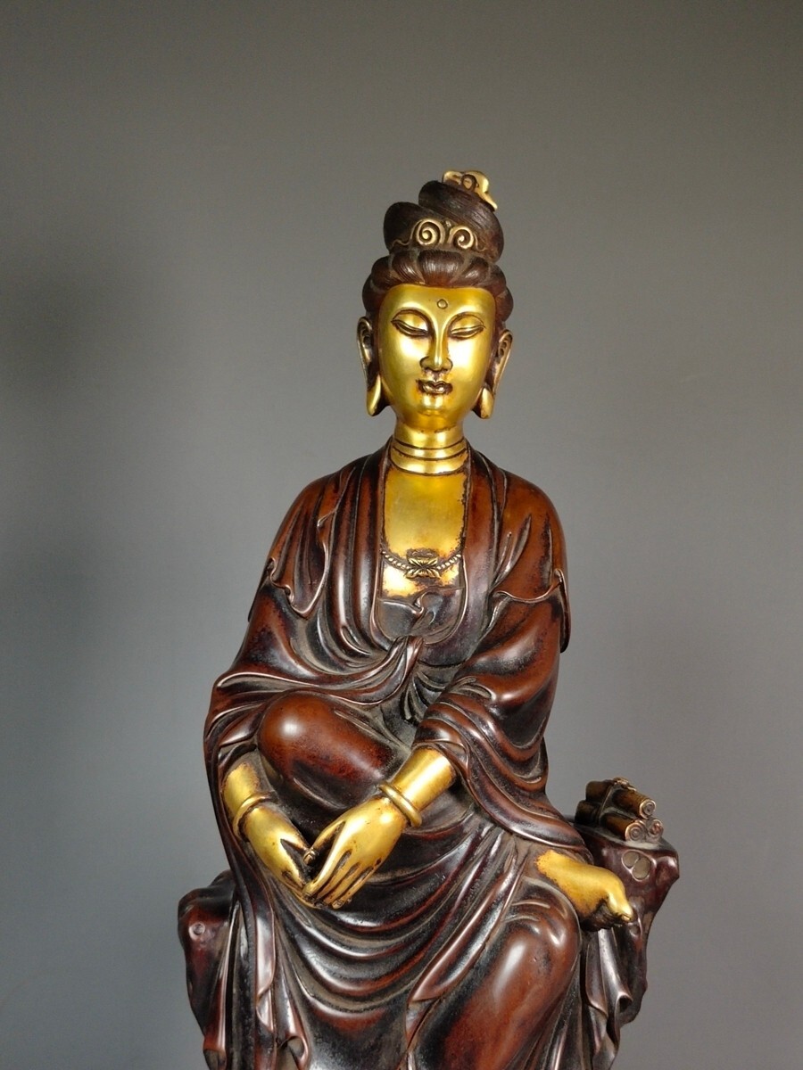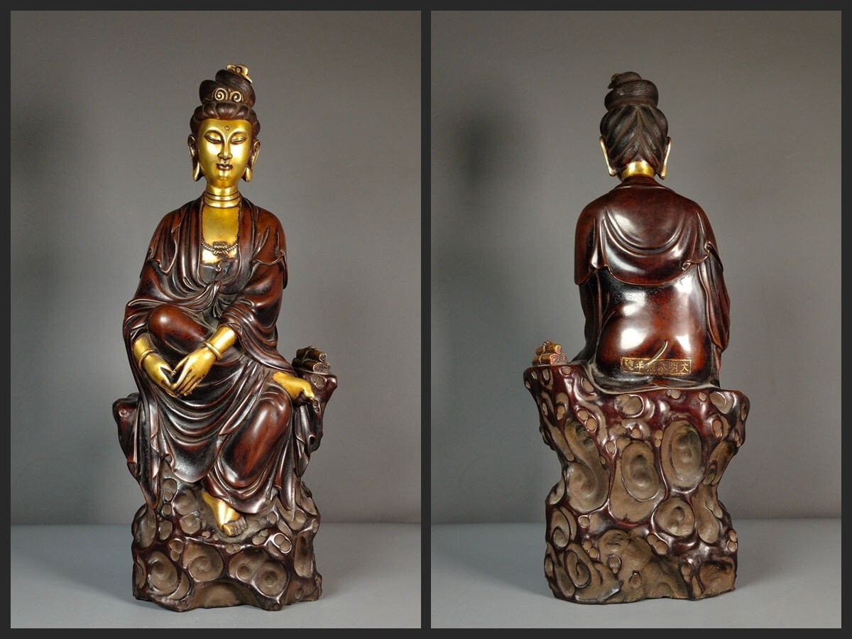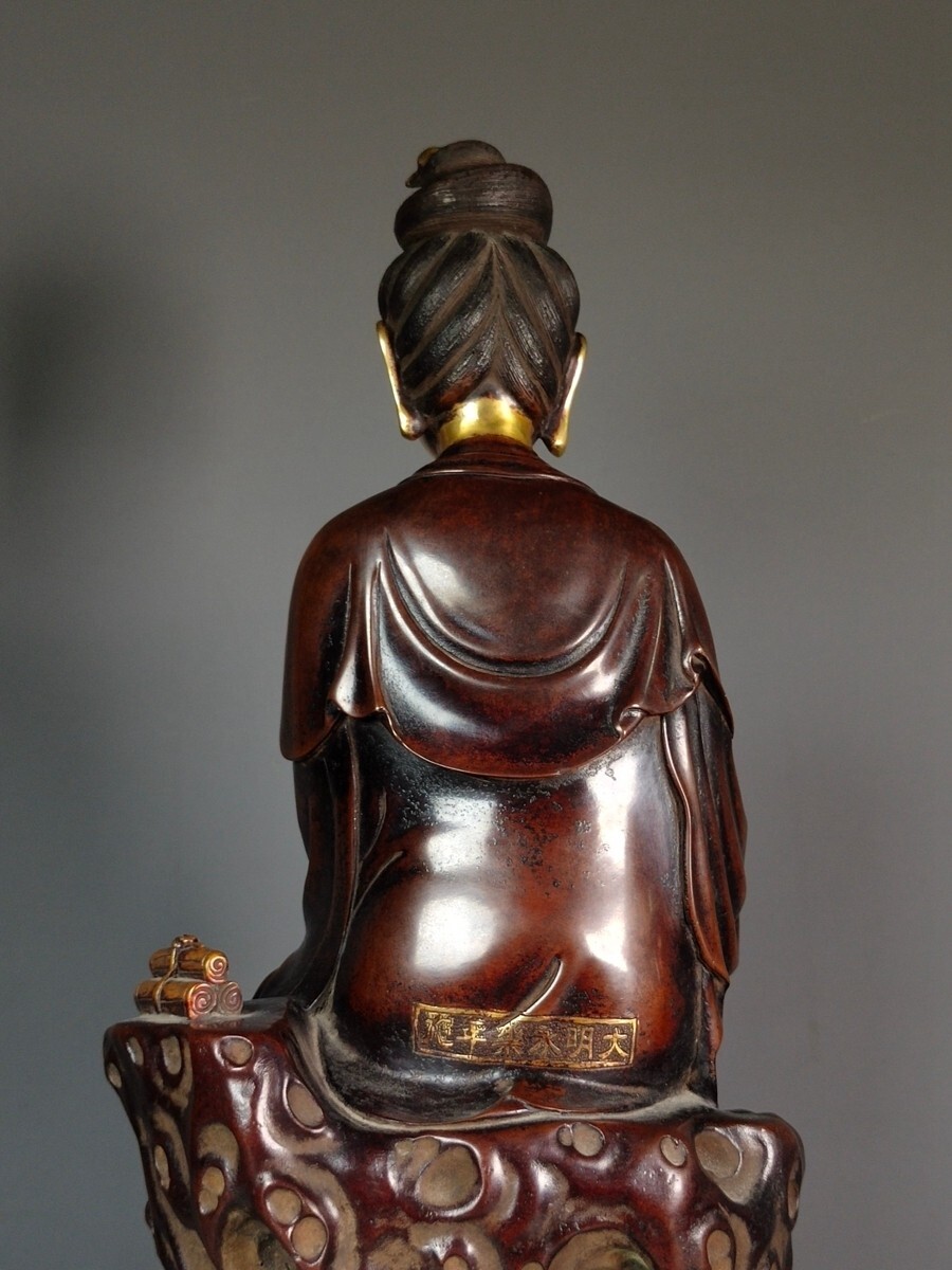 【瓏】古銅彫 塗金自在観音菩薩 造像 明時代 大明永楽年施款 古置物擺件 銅仏像 仏教文化 古美術 蔵出