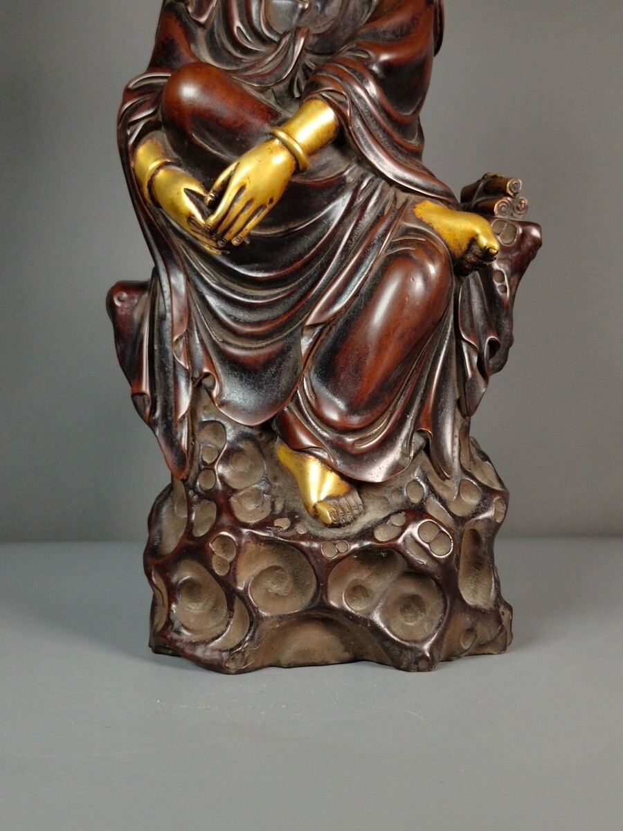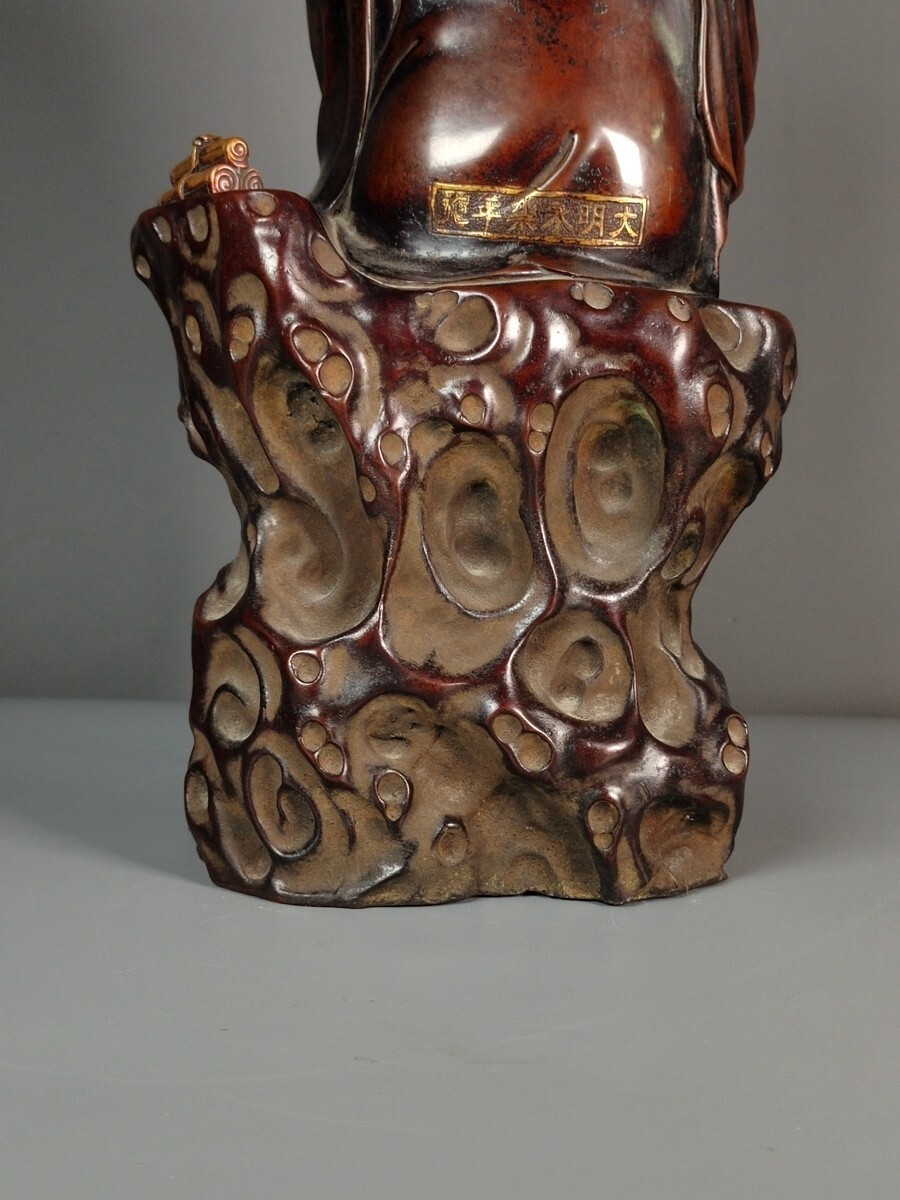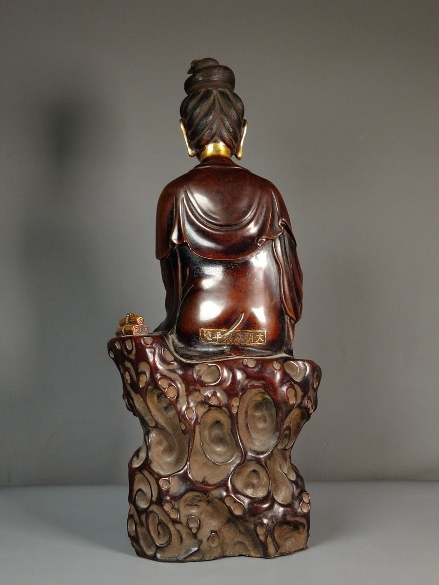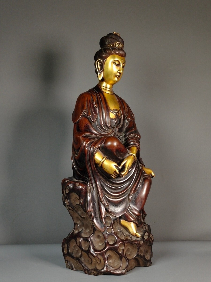 【瓏】古銅彫 塗金自在観音菩薩 造像 明時代 大明永楽年施款 古置物擺件 銅仏像 仏教文化 古美術 蔵出