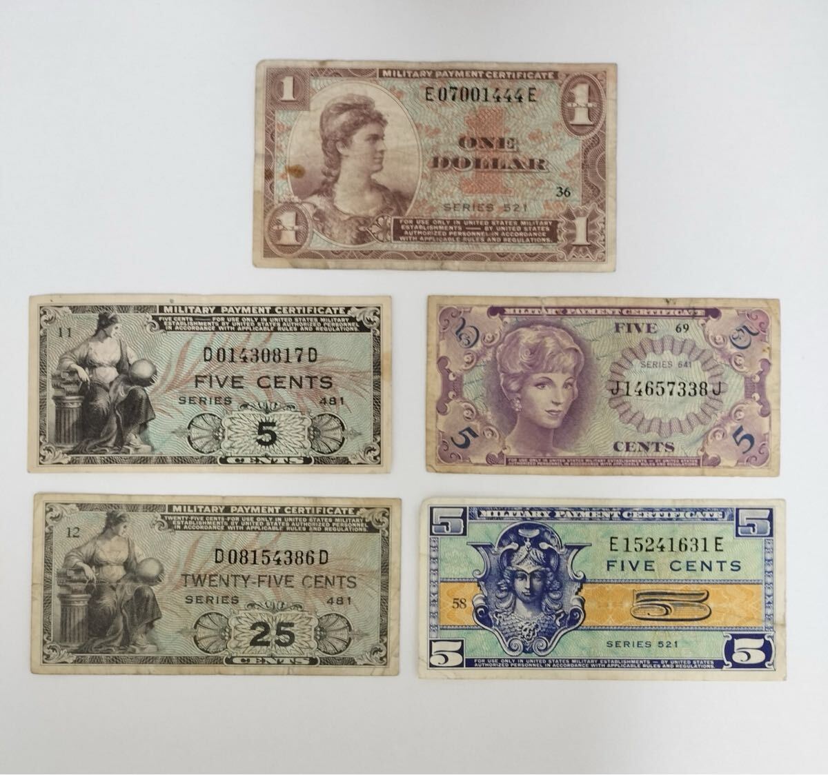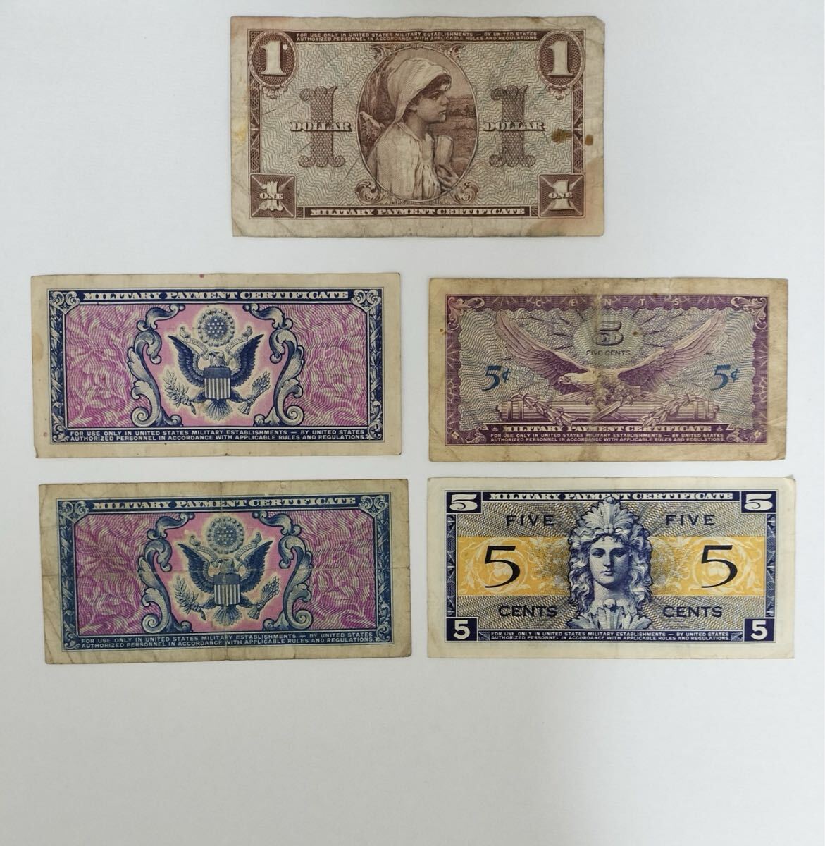 商品に興味をもっていただき、ありがとうございます。4475.アメリカ 軍票5種