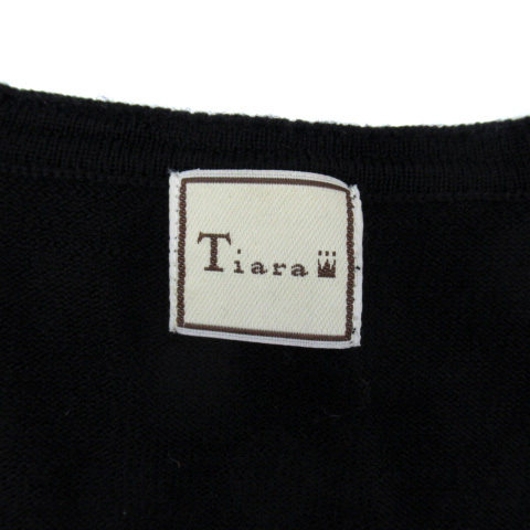 ティアラ Tiara ニットカーディガン ミドル丈 ラウンドネック 黒 ブラック /SM15 レディース