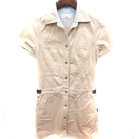 トミーガール tommy girl ワンピース タイト ミニ 半袖 S ベージュ /RT レディース