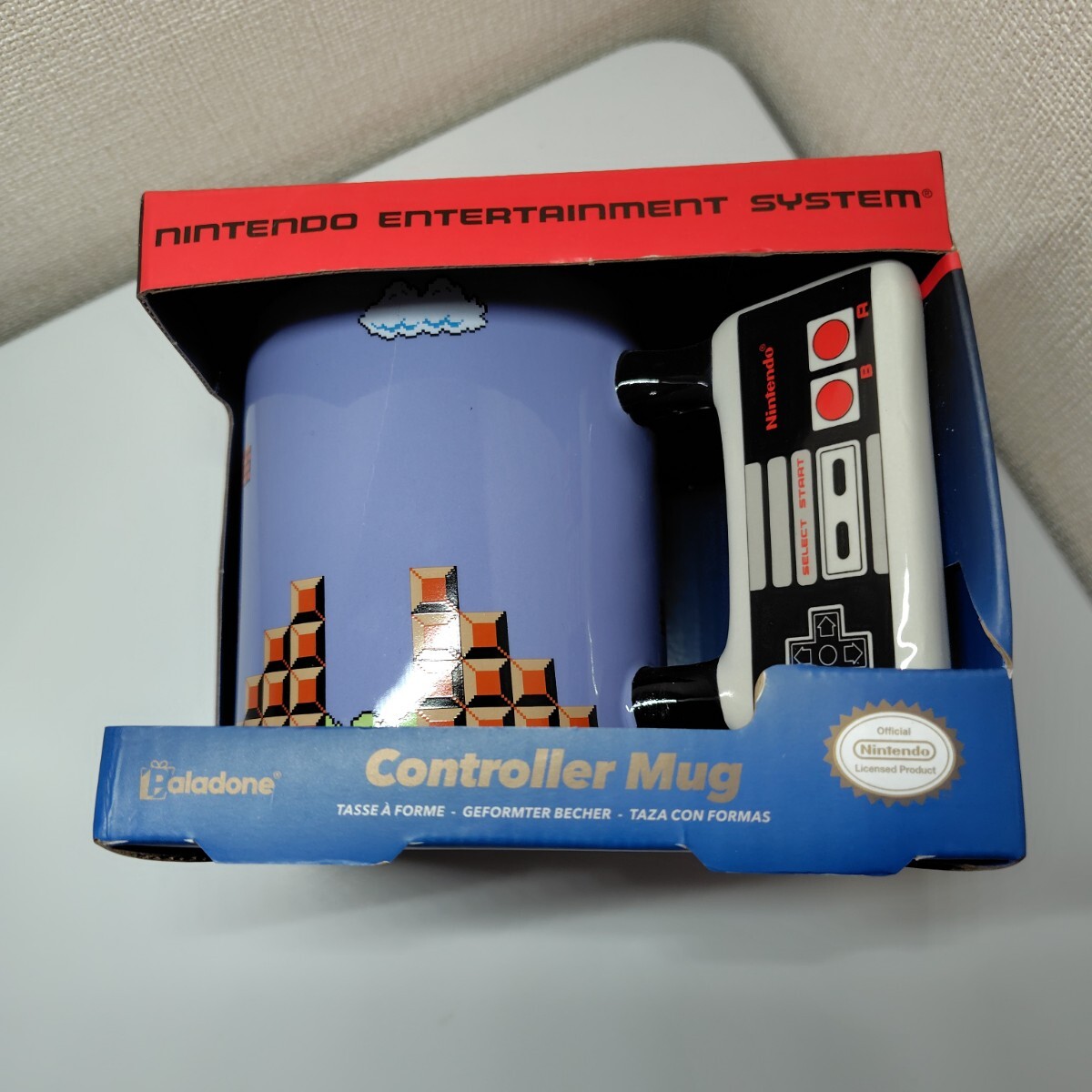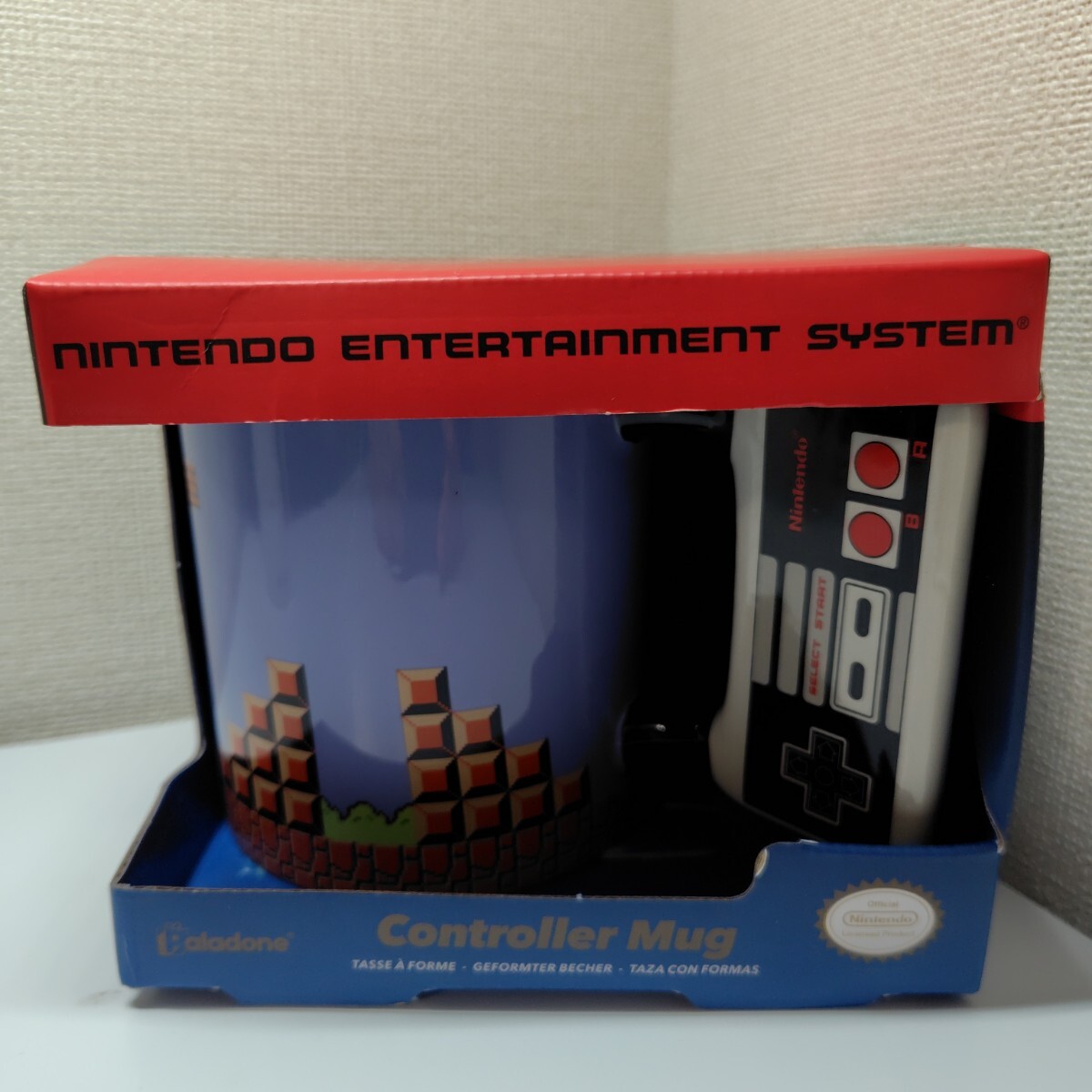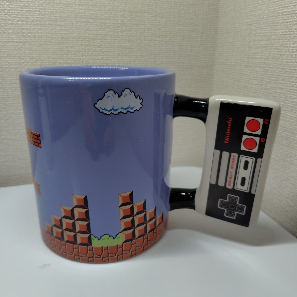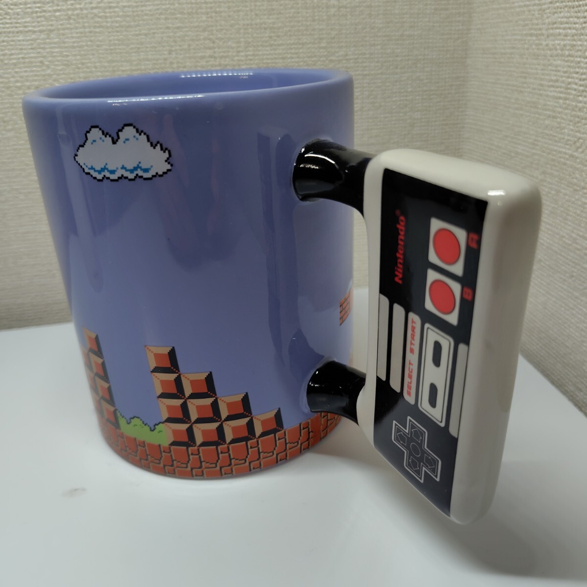 スーパーマリオのデザインが施されたコントローラー型マグカップ。