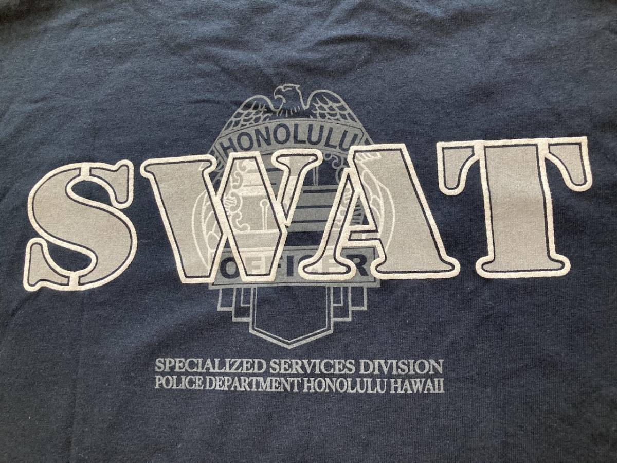 商品名:SWAT Tシャツ:表記S 平置き肩幅45cm 身幅(脇下~脇下)45cm 着丈(バック全長)67cm 袖丈(肩~袖裾)19cm※素人採寸の為多少の誤差はご了承下さい。 カラー:ネイビー 状態:コットン100%。バックプリント付き。使用感少なく良い程度だと思います。 発送方法:レターパックプラス(配達記録付600円)orレターパックライト(配達記録なし430円) ※古着になりますので神経質な方、御理解の無い方の御入札はお控え下さい。送料、振込手数料は落札者様の御負担となります。ノークレーム、ノーリターンでよろしくお願い致します。