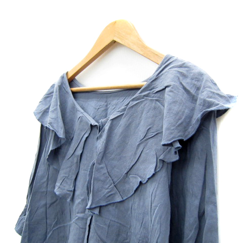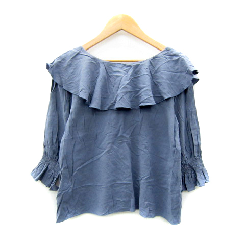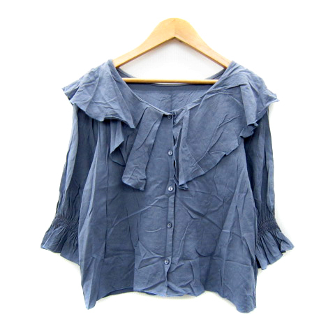 アズノウアズ as know as ブラウス シャツ 七分袖 ラウンドネック 無地 フリル 青 ブルー /SY31 レディース