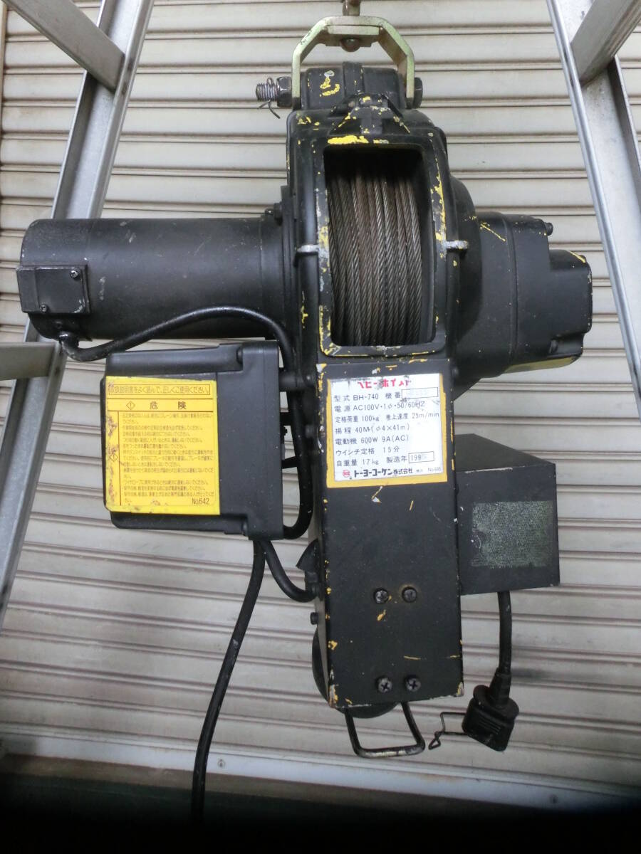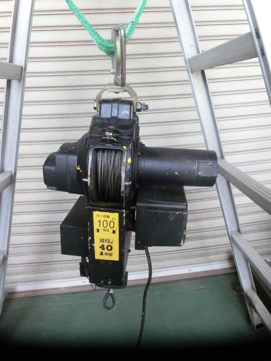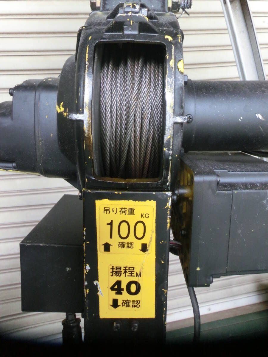 【柏市より】動作良好 揚高40mワイヤー 100kgホイスト トーヨーコーケン AC100V リモコン欠品 荷揚げ 全国発送可能!