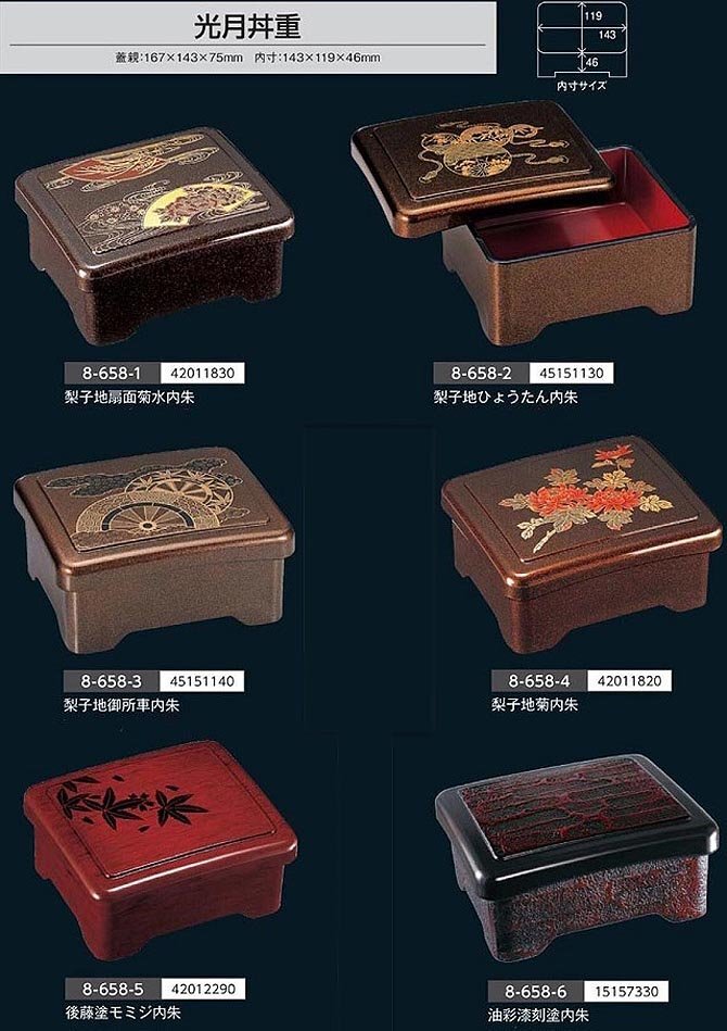 ★業務用漆器丼重光月梨地ひょうたん内朱塗100個うな重・かつ重・天丼重・海鮮重などに越前塗日本製新品