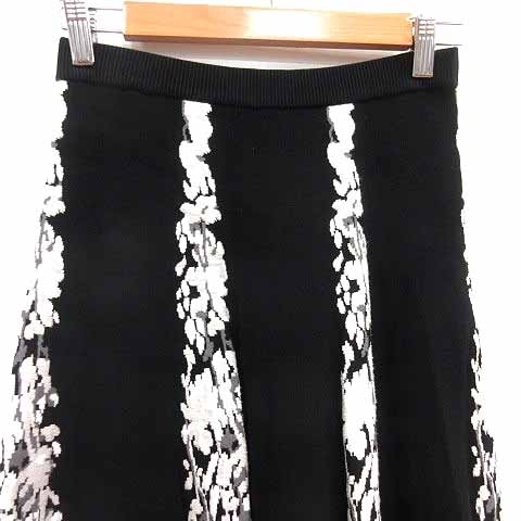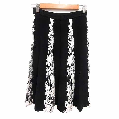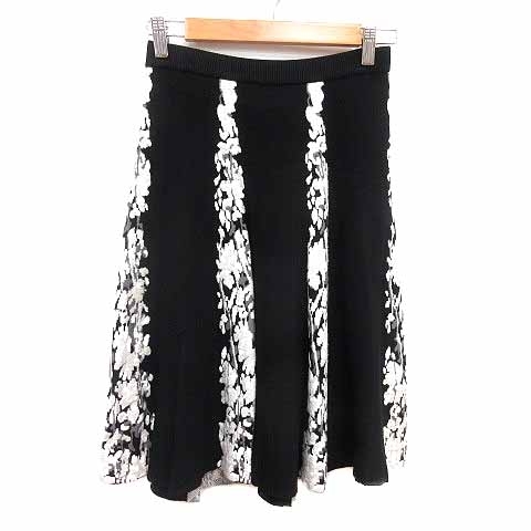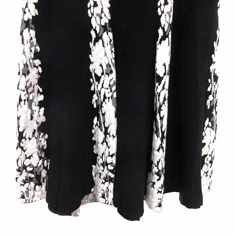 エポカ EPOCA フレアスカート ひざ丈 ニット 花柄 40 M 黒 ブラック 白 ホワイト /YK レディース