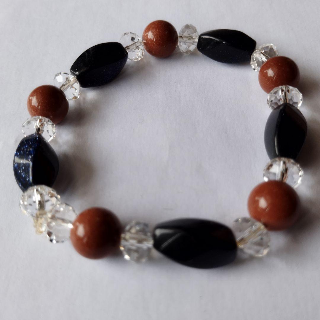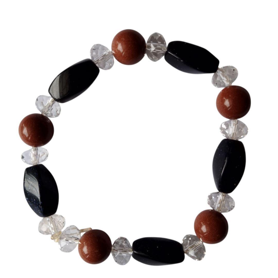 キラキラ輝く ゴールドストーン & オニキス ブレスレット 天然石 人工石 腕周り16cm