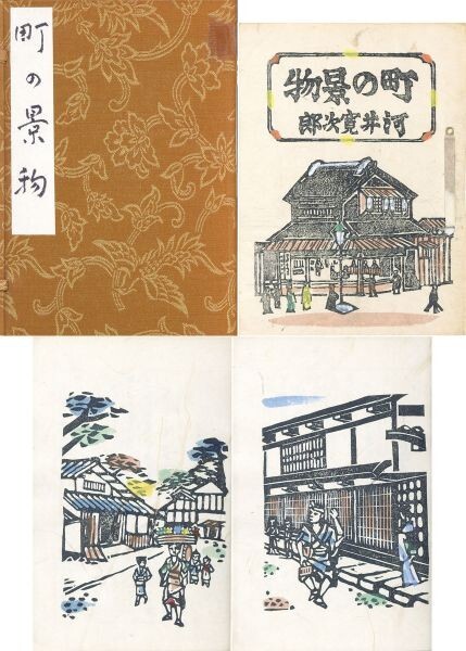 河井寛次郎 町の景物 北海道民芸協会 限200 川上澄生木版5図(表紙・裏表紙含各手彩色) Sumio Kawakami