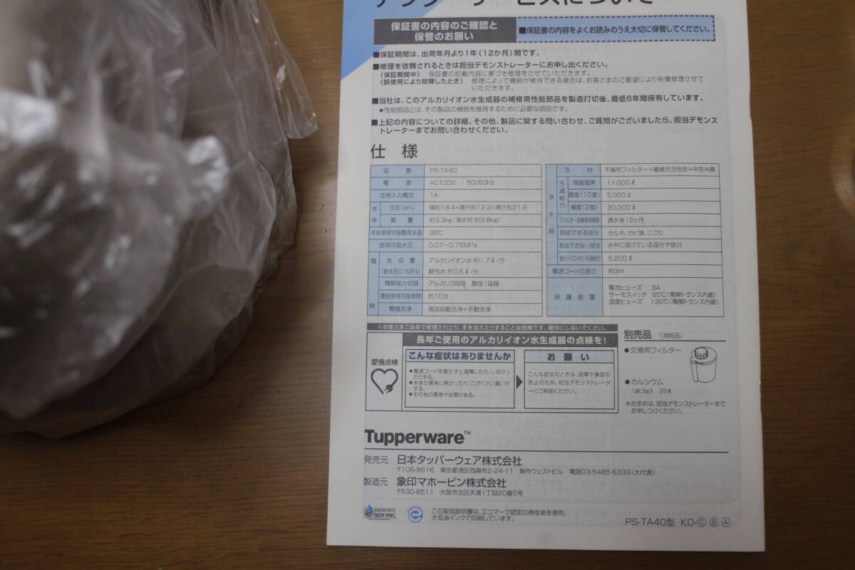 Tupperware アルカリイオン水生成器 PS-TA40 日本タッパーウェア