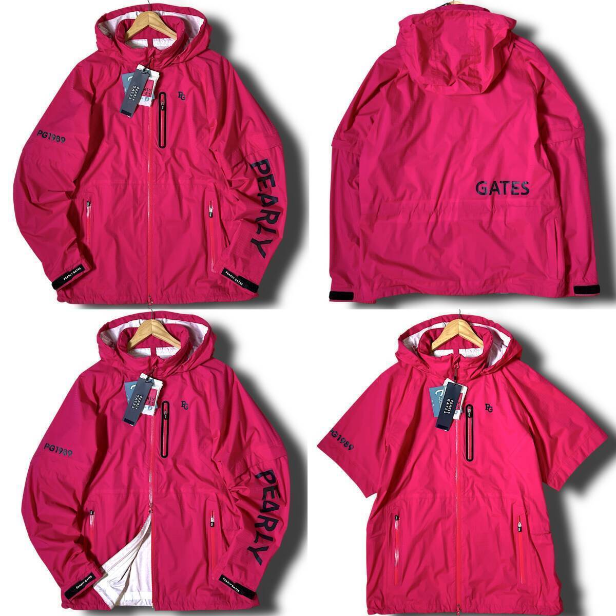 タイトル 新品 PEARLY GATES パーリーゲイツ 定価6.6万 AQUAX 撥水 防水 透湿 ビッグロゴ 袖&フード着脱可 フルジップ ダブルジップ 止水ジップ採用 6way 長袖にも半袖にもなる! レインジャケット ブルゾン レインパンツ セットアップ 上下セット ゴルフウェア レディース 0 S 相当 GOLF スポーツ レジャー 普段使い タウンユース カジュアル 春夏秋 090 マゼンタピンク系