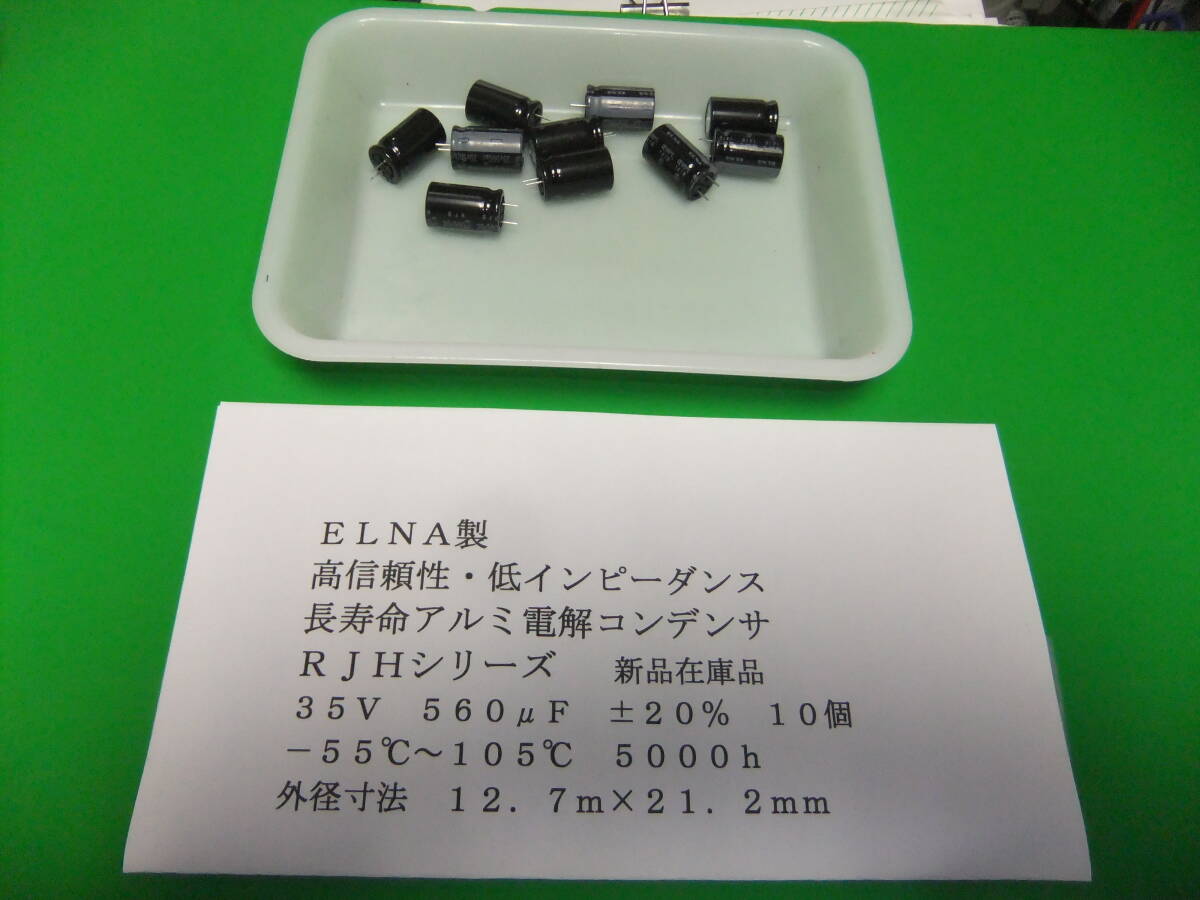 ELNA製 高信頼性・低インピーダンス・長寿命アルミ電解コンデンサ 35V 560μF RJHシリーズ 10個 新品在庫品 C