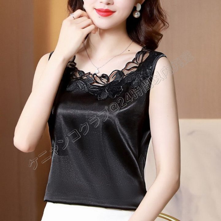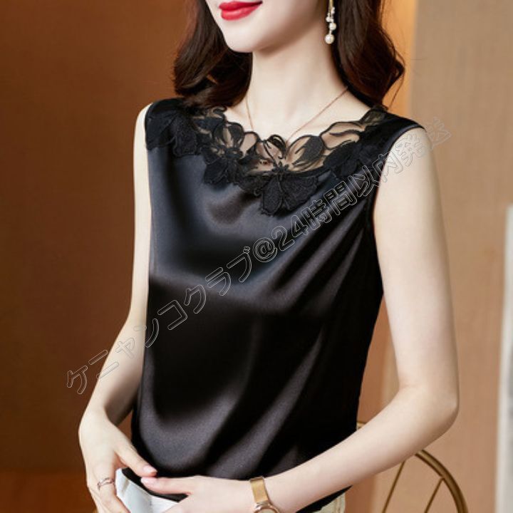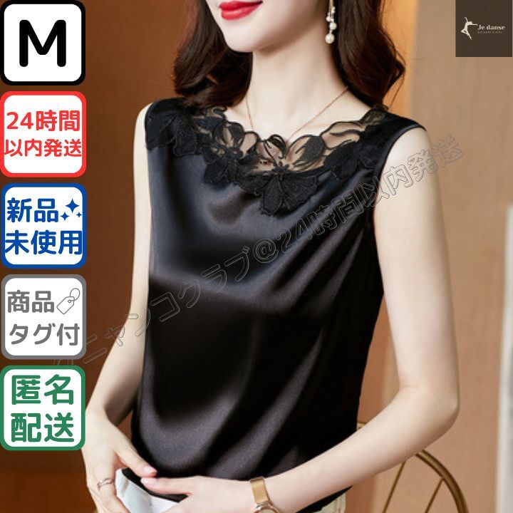 社交ダンス ノースリーブレースサテントップス 練習着・レッスン着 Mサイズ