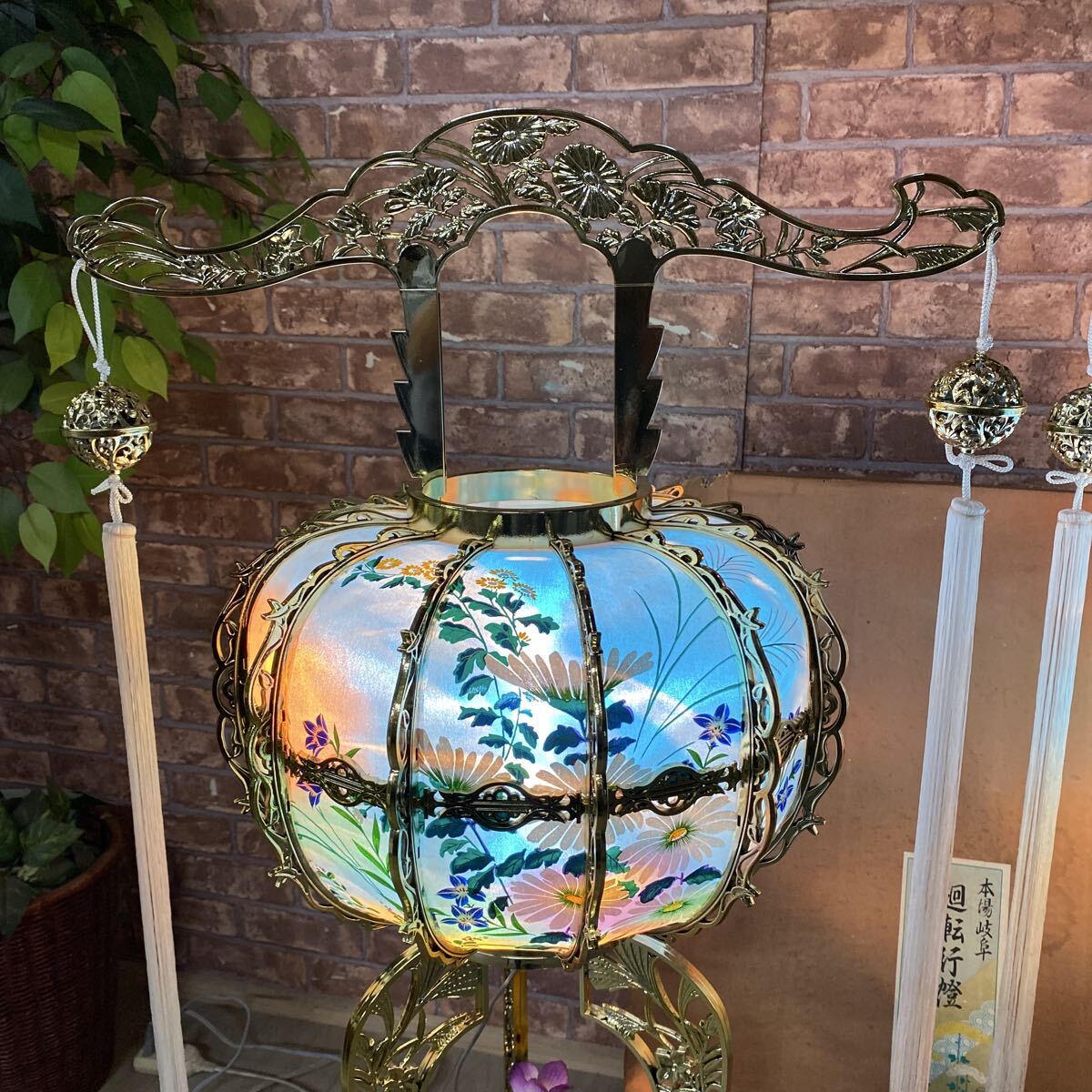 N 6386 [ 本場 岐阜提灯 廻転行燈 ] 高さ約110㎝ 中古品 箱入り 盆提灯 行灯 組立て式 電気コード式 仏壇 仏具 お盆ちょうちん 保管品