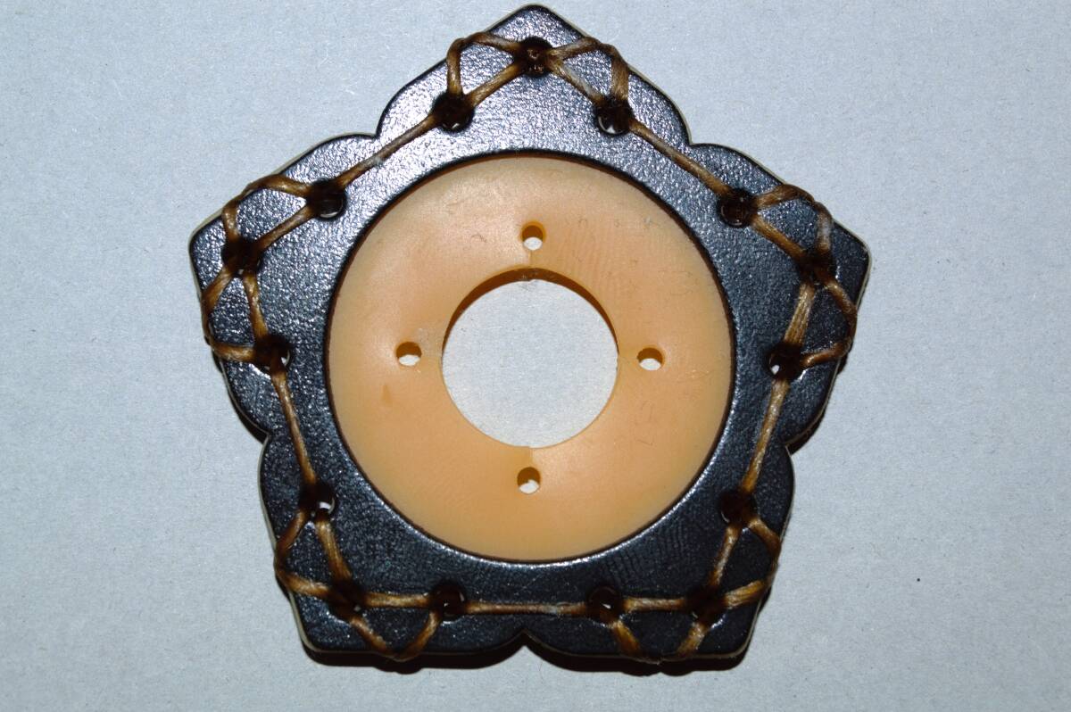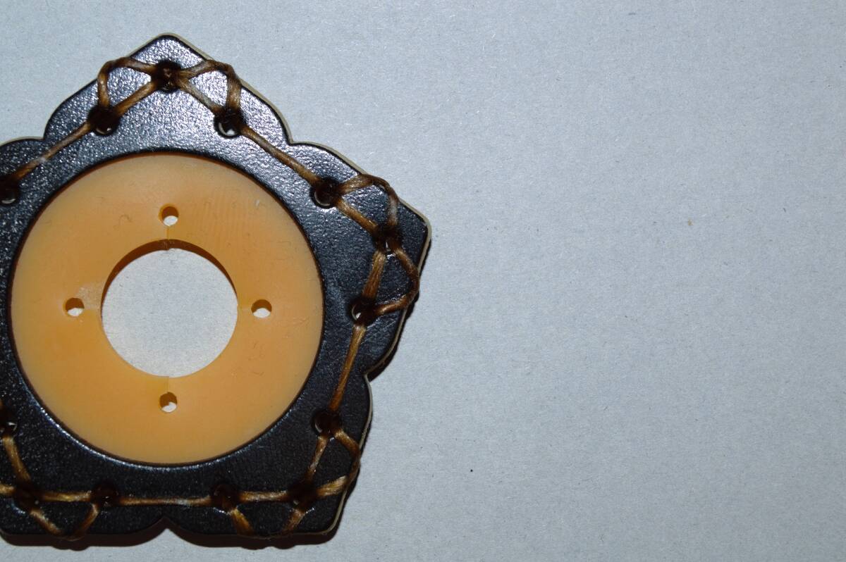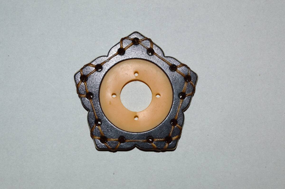 | 商品説明 | ・桔梗の形をした鍔止めです。 ・構造上の特許を取得した製品になります。(特許第6099218号) ・構造は、樹脂の板でゴムを挟み、ナイロン糸で縛っただけの 造りで接着剤を使用していません。 糸を切れば簡単に分解する ことが可能で、ゴムの交換ができ、リサイクル可能な製品です。 ・商品の大きさは、幅65㎜ 厚さ5㎜です。 ・ゴムは厚さは2mmと厚く、輪ゴムと同じアメゴムを使用して いますので伸びがよく、破れにくいゴムを使用しています。 ・ゴムの中心の穴は18㎜。そこから四方に切れ込みが入っており、先端に3㎜の穴をあけてあります。この切れ込みによって ゴムへの摩擦が軽減され、ゴムがより長持ちします。 ・樹脂本体の穴は40㎜で極太、八角の柄でも対応ができる造りになっています。 ・10個以上の御購入希望の方や業販を御希望の方は『出品者への質問』から御相談下さい。 ・郵送ですので到着には4日程度かかりポストに投函される形になります。 ・昇段のプレゼントやお返し、部活で統一したり大会の景品に 御購入頂いております!! |