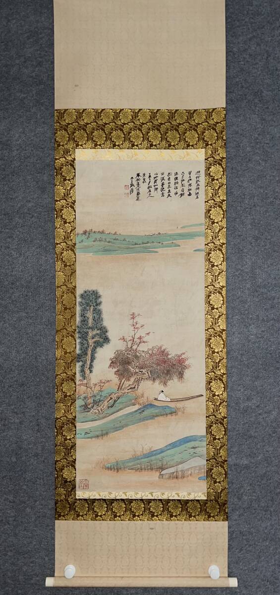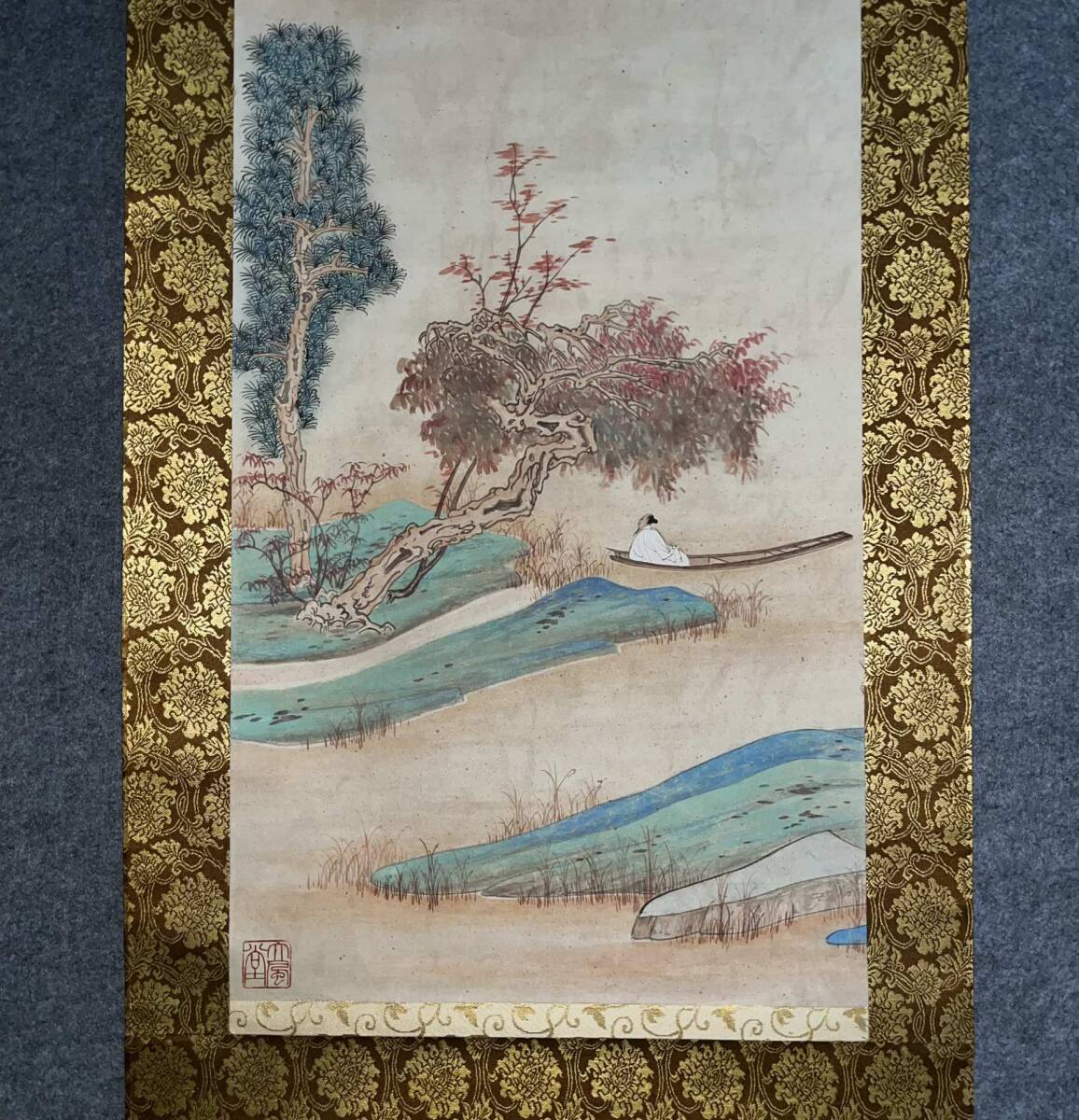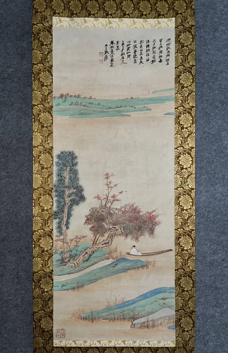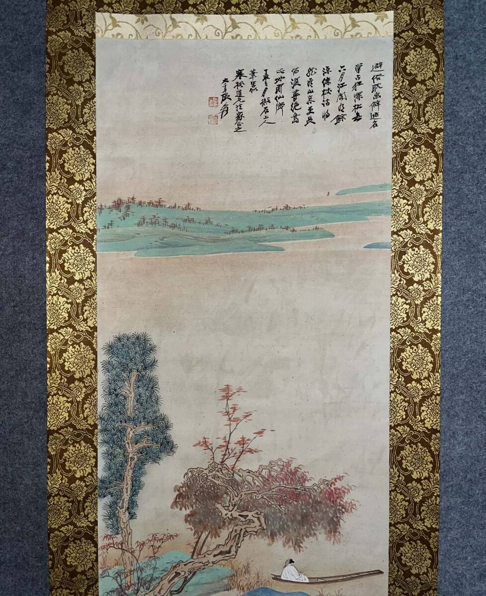 『三希堂』 中国画 古美術 [張大千山水図] 掛け軸 真筆逸品 肉筆保証 中心尺寸105X41cm ABC693