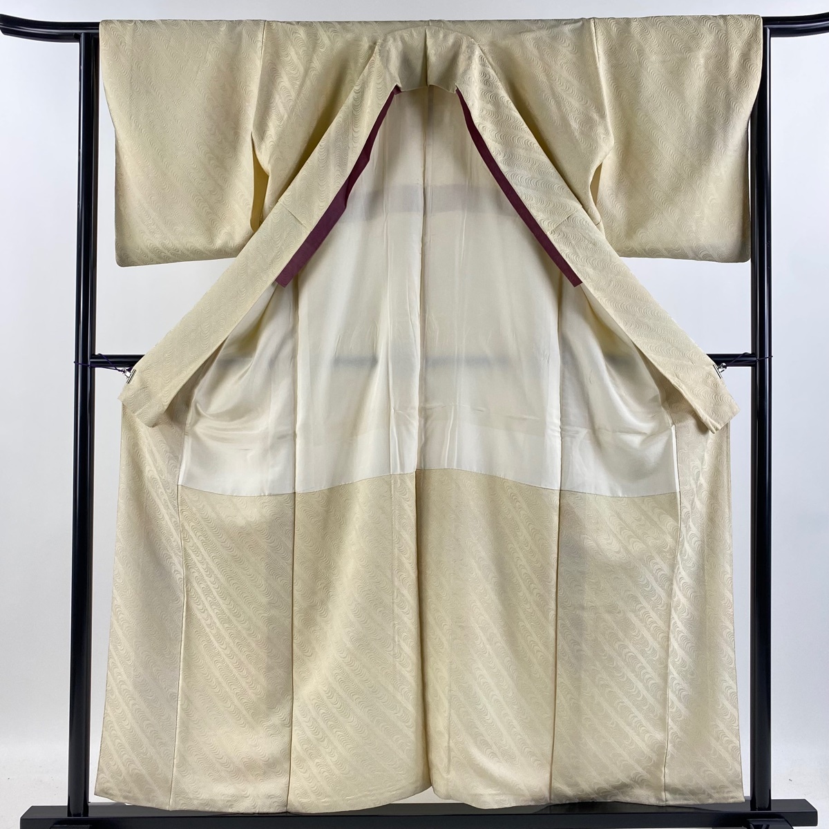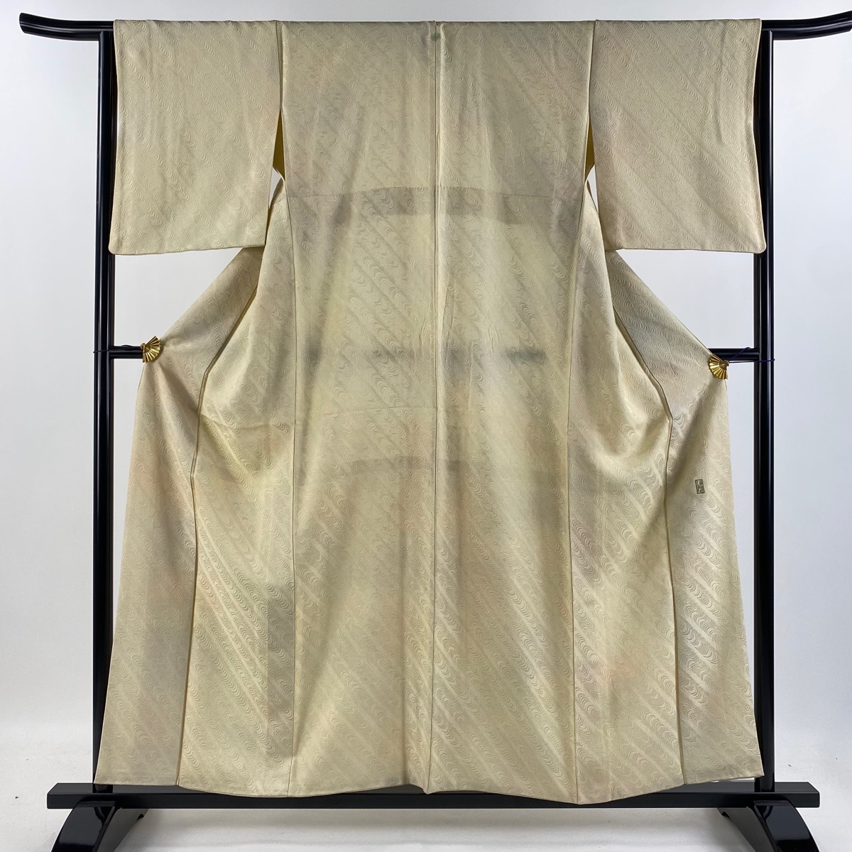 | 小紋 秀品 和田光正 落款 地紋 ぼかし 薄黄 袷 身丈156 裄丈64.5 M 正絹 【中古】 |
