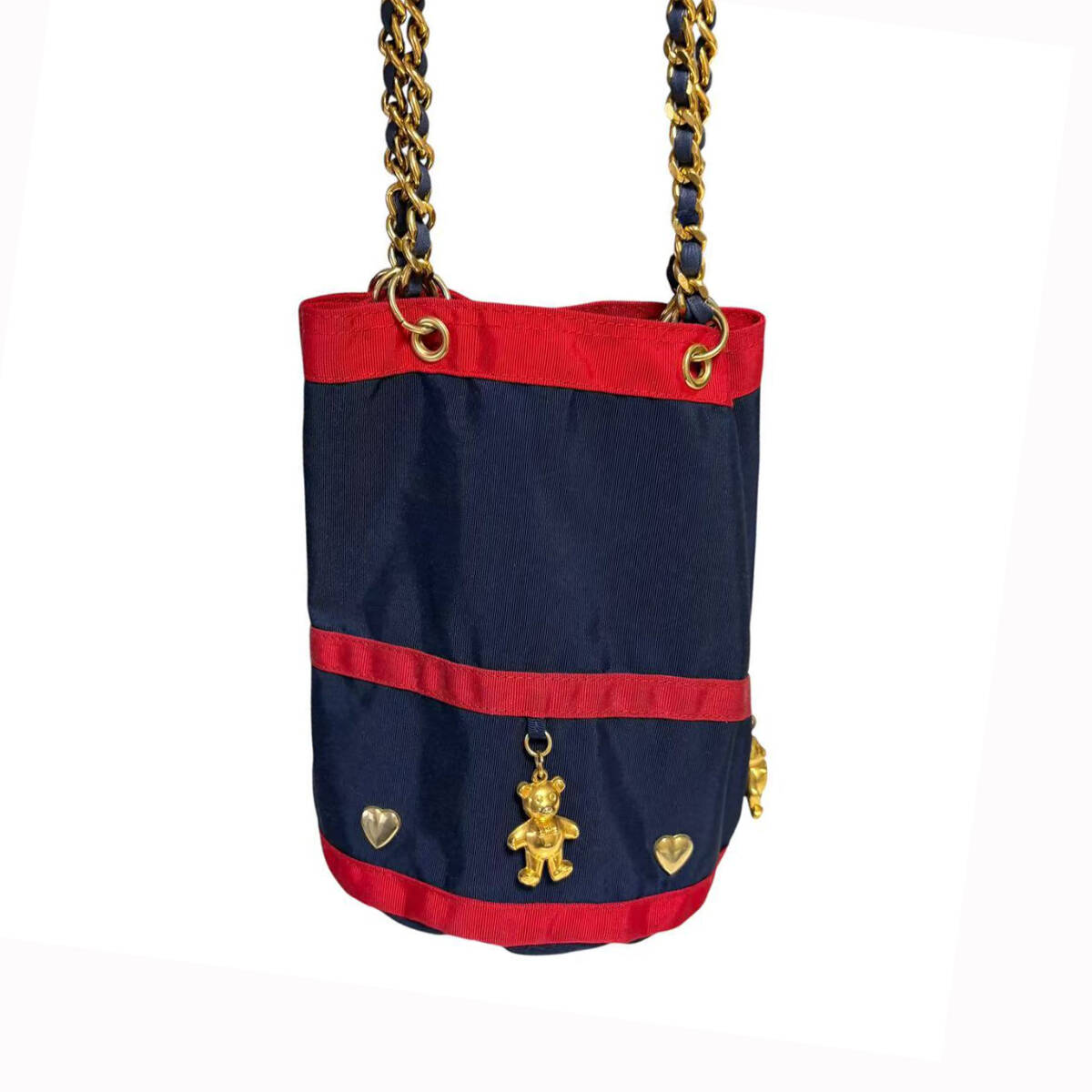おしゃれ チエーン 巾着バック ショルダーバッグ ゴールドクマ かわいい
