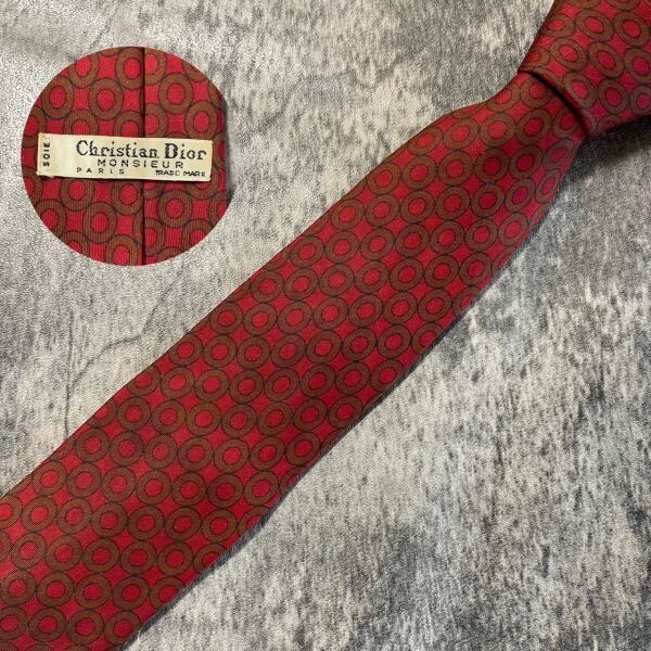 [KN287] Christian Dior レッド シルク ネクタイ