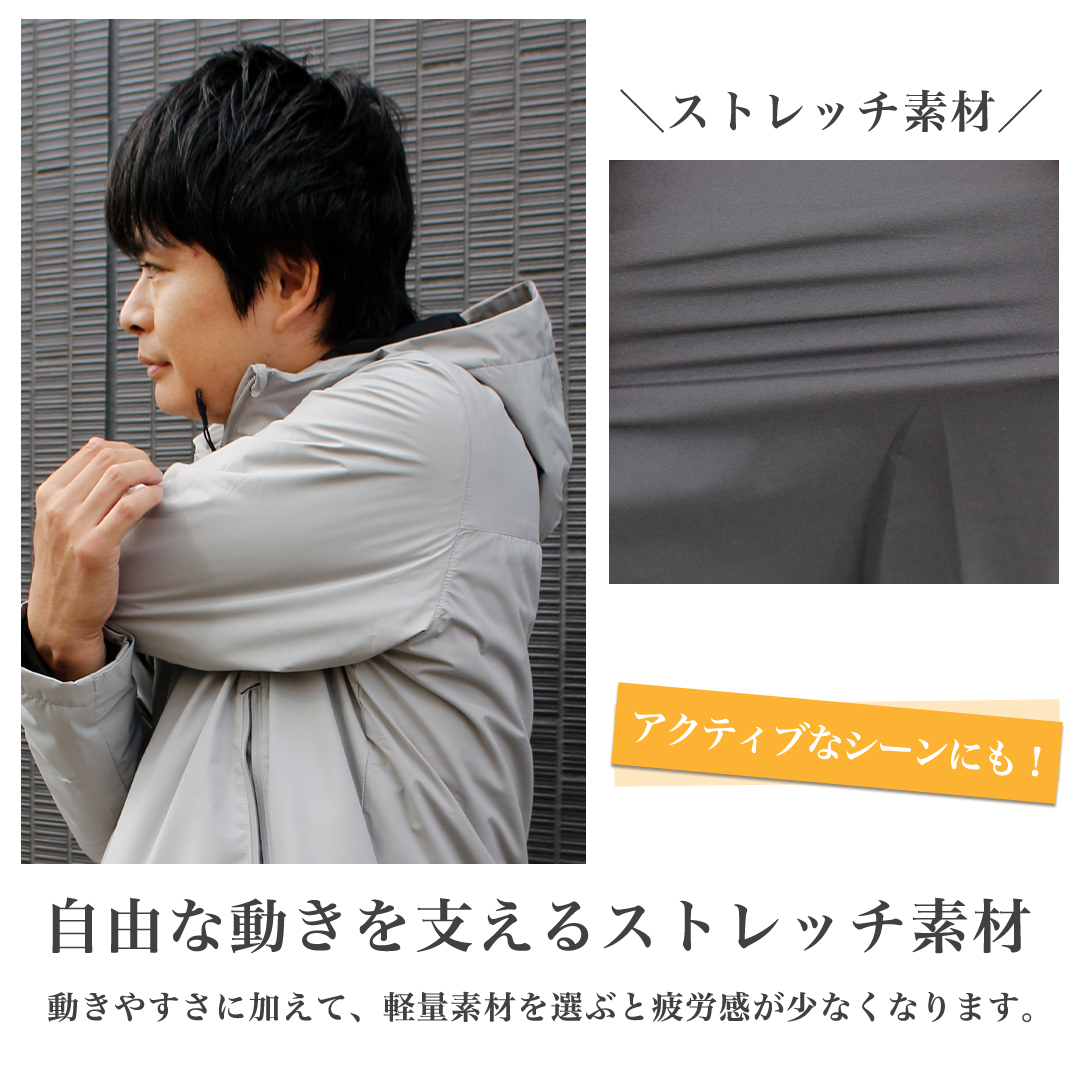 ・ 断熱性・透湿性という基本性能はもちろん、「ストレッチ」素材の採用により、着心地の良さを追求。