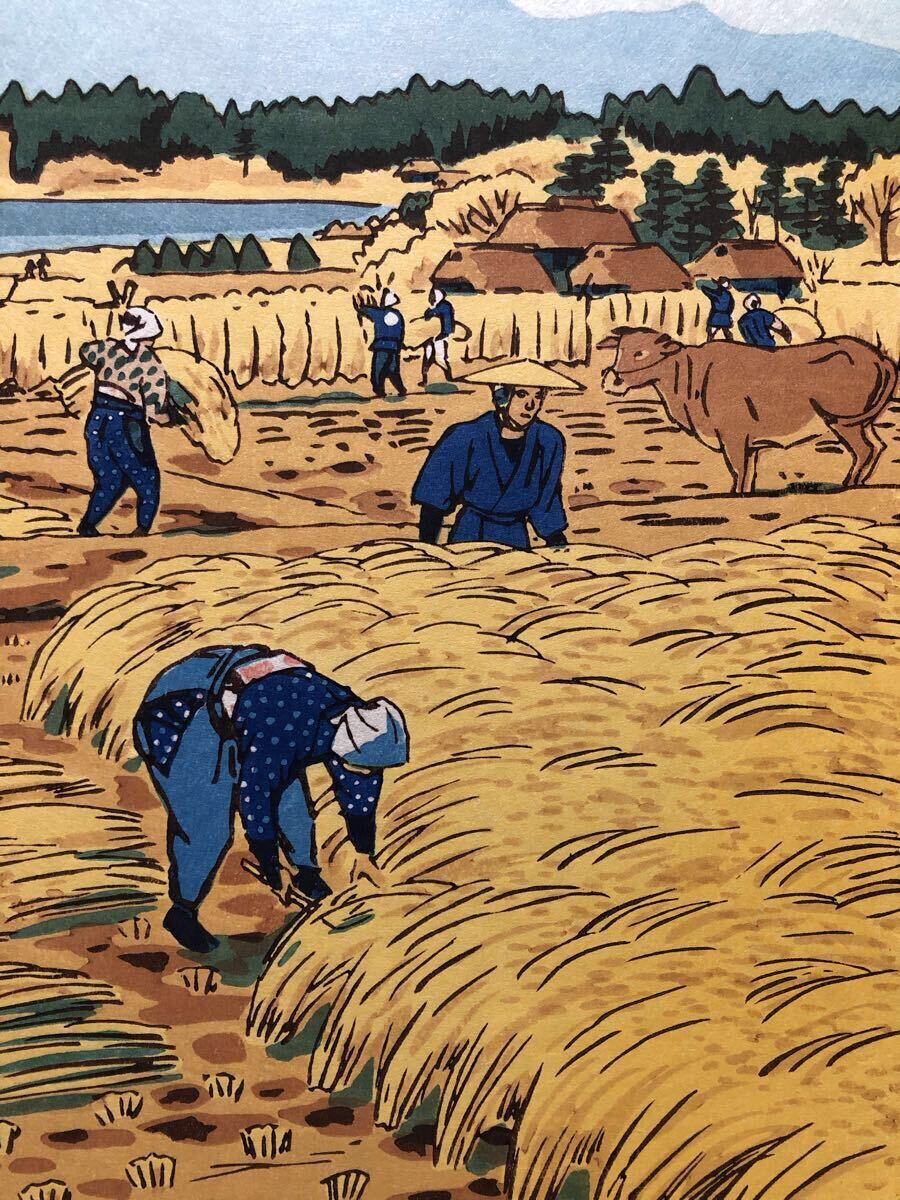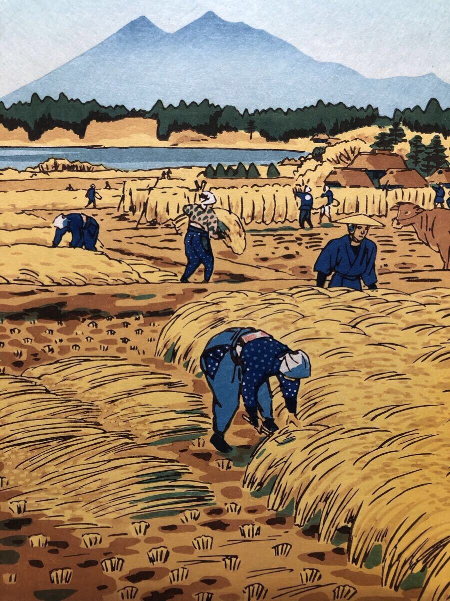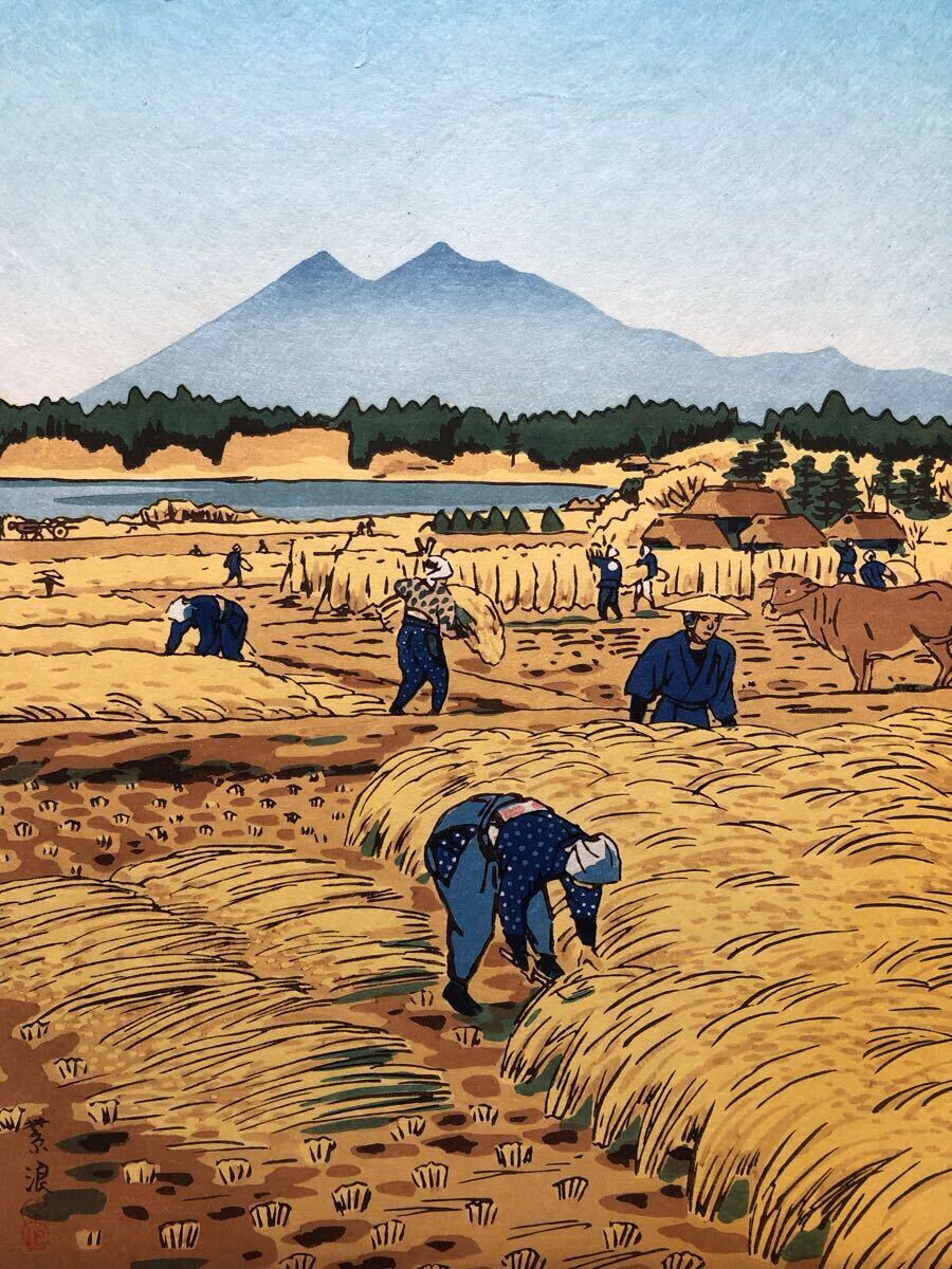 木版画 笠松紫浪【とりいれ】芸艸堂版 大判 彫長島 摺原田 真作 ■ 浮世絵 新版画 創作版画 Kasamatsu Shiro 川瀬巴水 吉田博 小原古邨