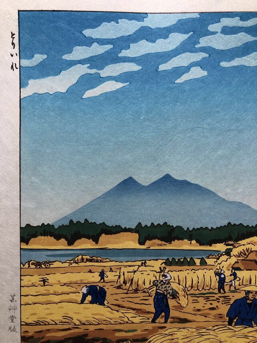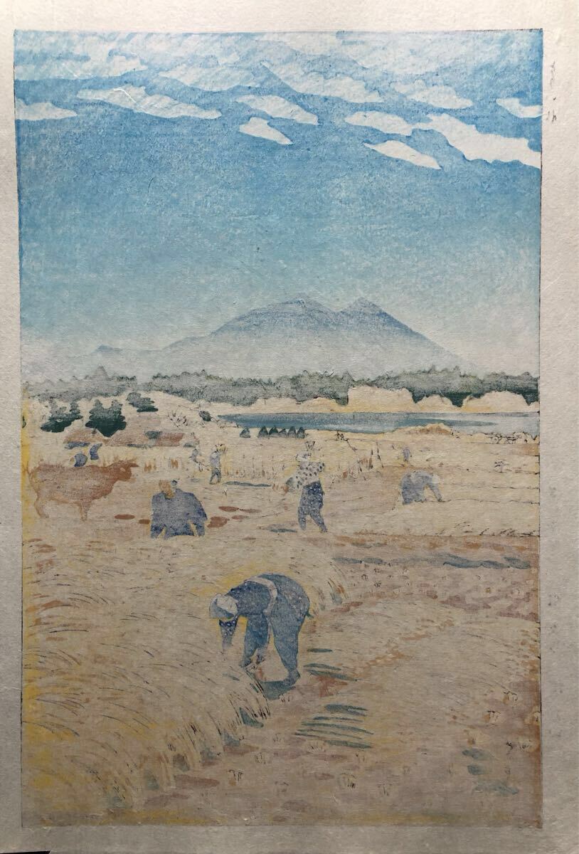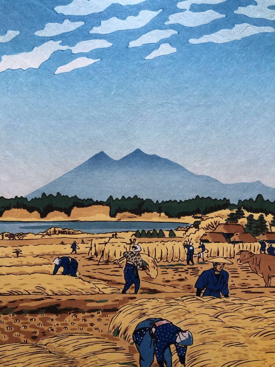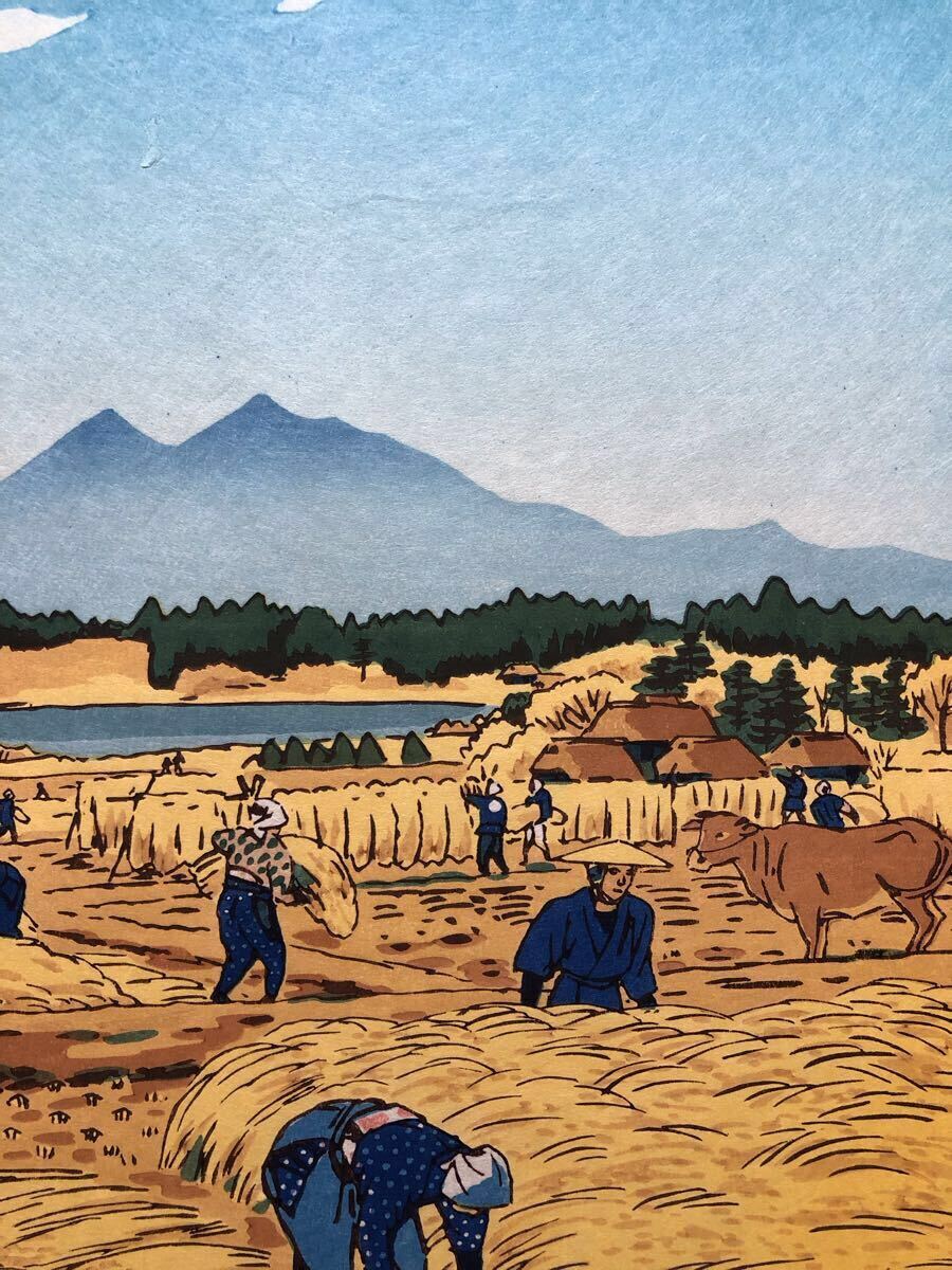 木版画 笠松紫浪【とりいれ】芸艸堂版 大判 彫長島 摺原田 真作 ■ 浮世絵 新版画 創作版画 Kasamatsu Shiro 川瀬巴水 吉田博 小原古邨