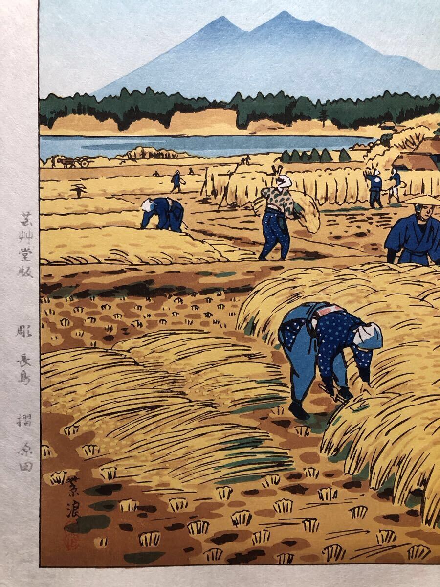 木版画 笠松紫浪【とりいれ】芸艸堂版 大判 彫長島 摺原田 真作 ■ 浮世絵 新版画 創作版画 Kasamatsu Shiro 川瀬巴水 吉田博 小原古邨。