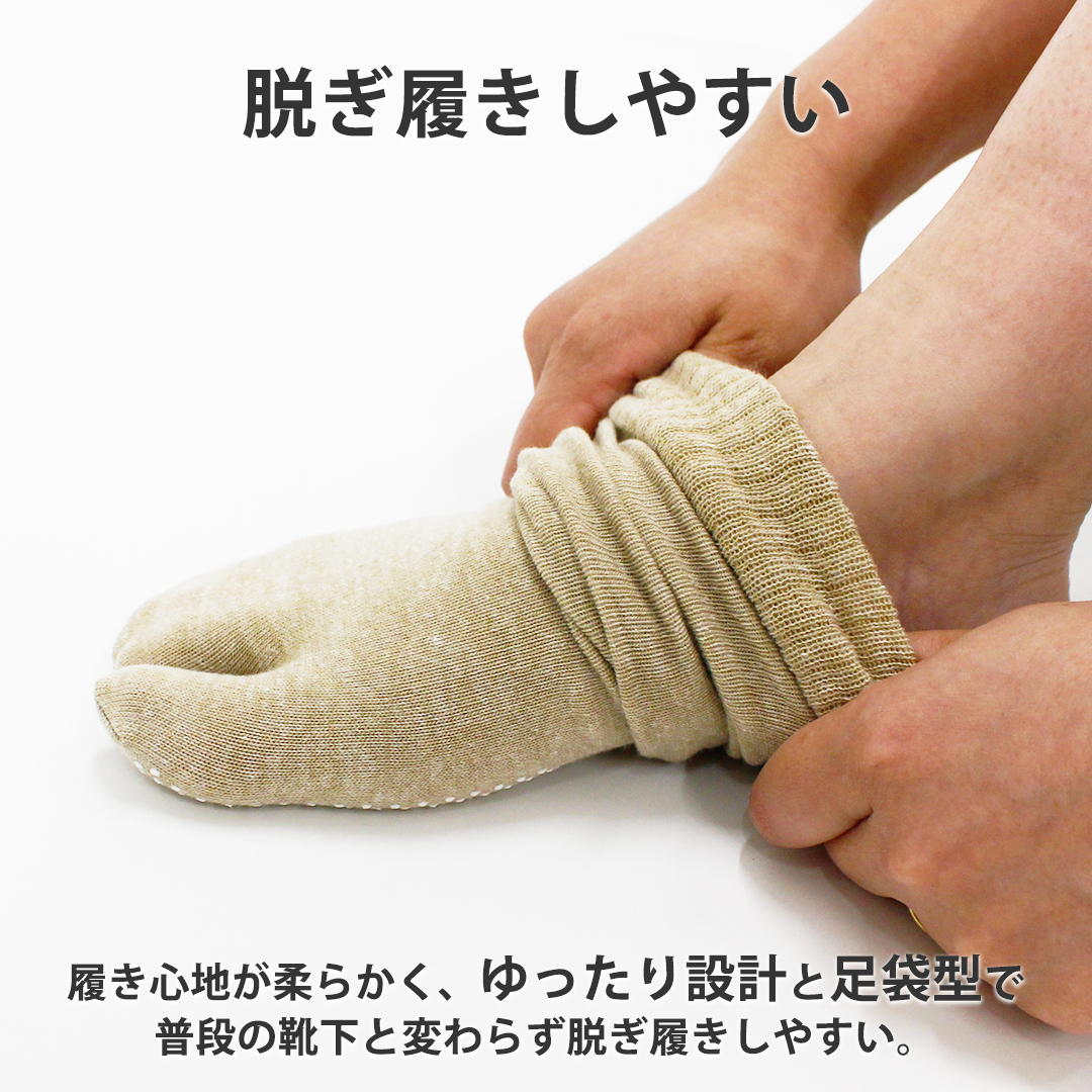 ・締め付けがなく,滑り止めで転倒防止。お年寄りにもおすすめ。