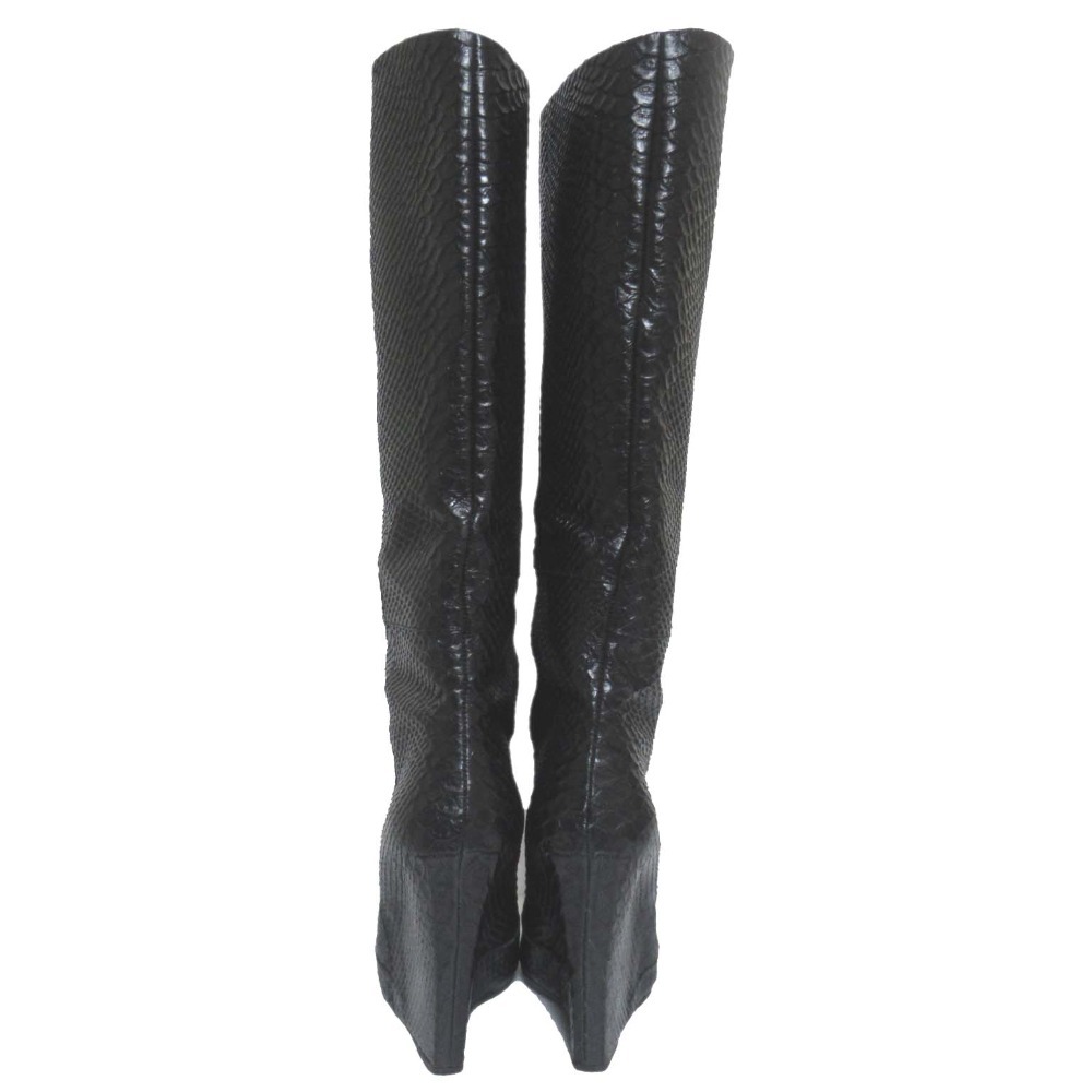 美品 GIUSEPPE ZANOTTI ジュゼッペザノッティ パイソン レザー ウェッジソール ロングブーツ サイズ37 24cm ブラック
