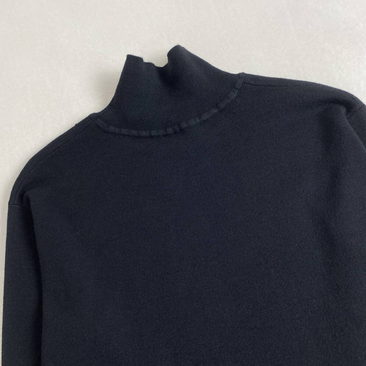 【ポイント】HERMES リブネック ニット トップス ロゴ刺繍 ブラック M・L相当