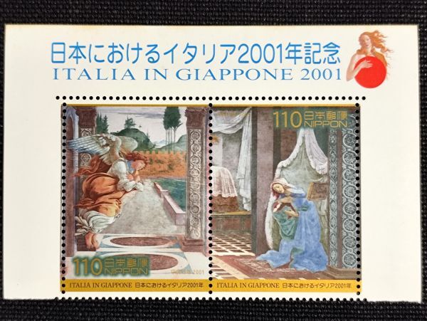 [25080512]【日本におけるイタリア2001年記念】2種連刷 タイトル付「ボッティチェッリ画「受胎告知」」110円×2 2001年発行 美品