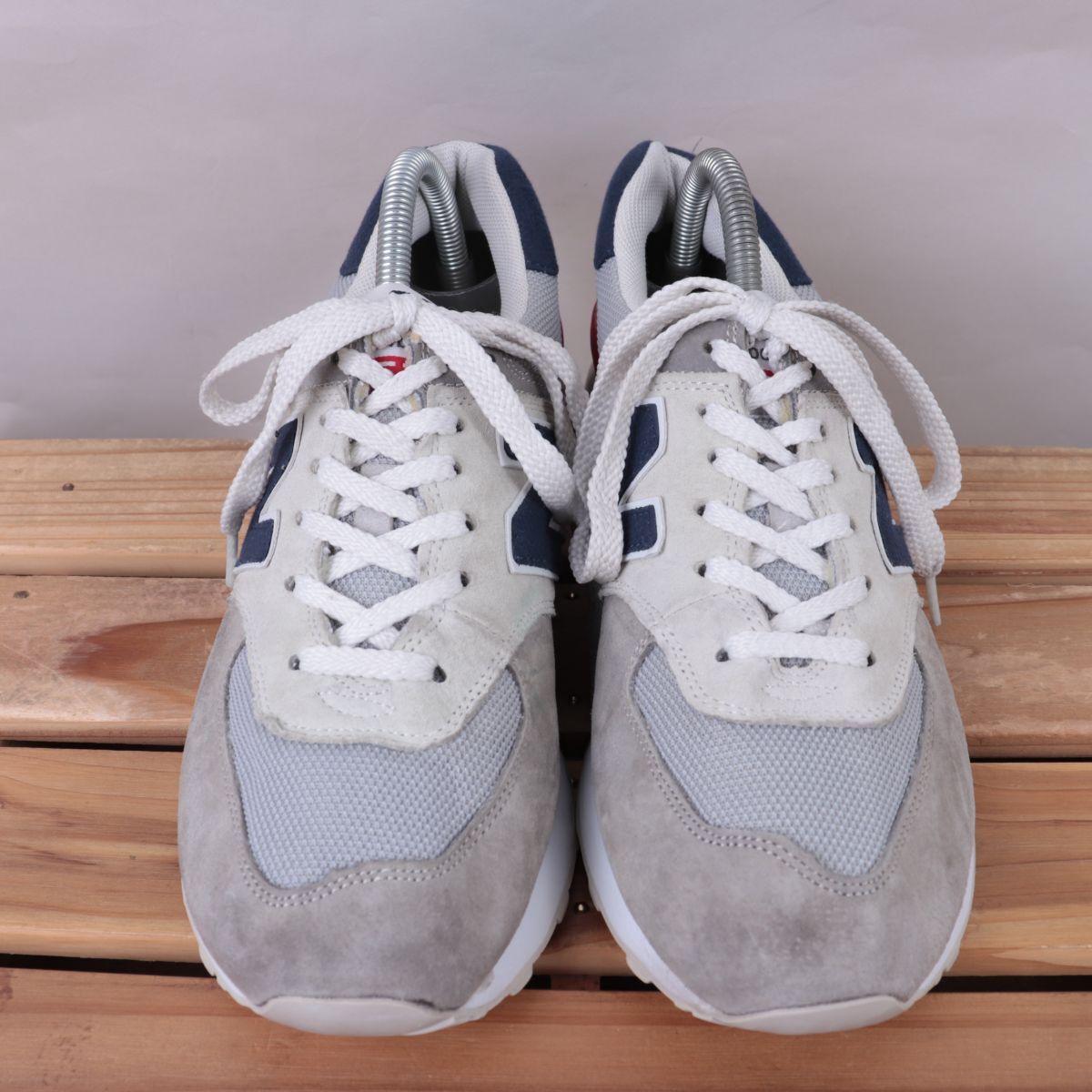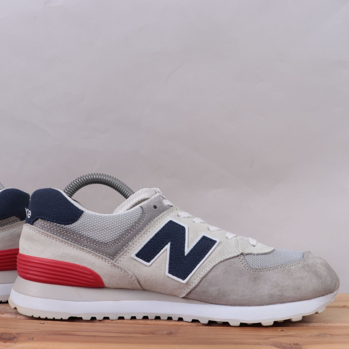 z866【574】ニューバランス US8 26.0cm/灰 グレー 紺 ネイビー 赤 レッド newbalance メンズ スニーカー 中古