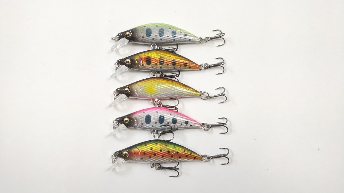 捕食しているベイトに合わせるため、渓流に生息する魚をモチーフにした5カラーを取り揃えました。