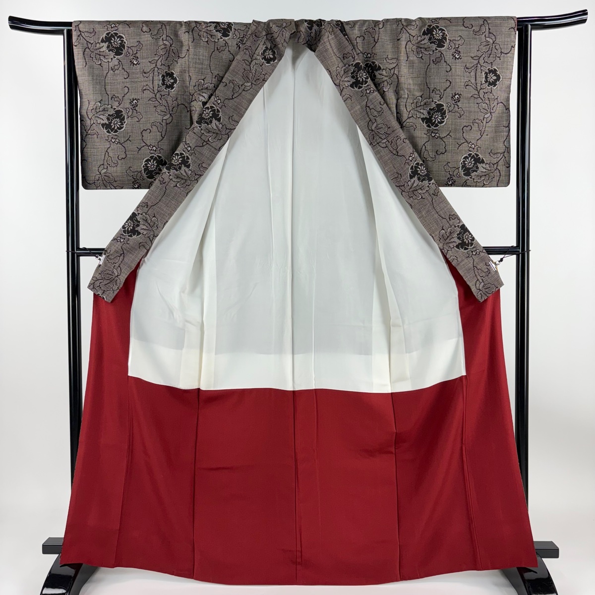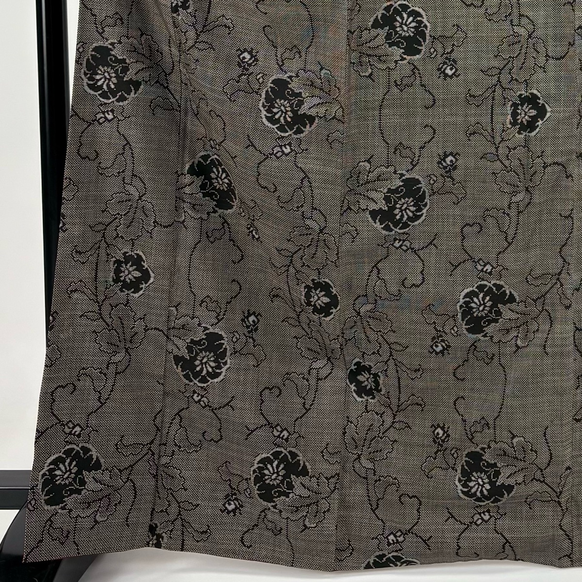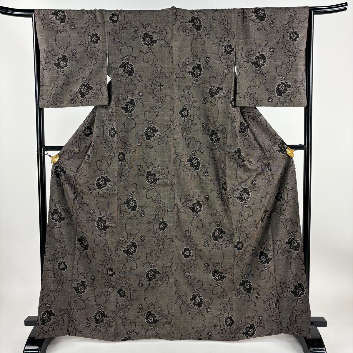 | 紬 秀品 草花 焦茶色 袷 身丈166 裄丈67 M 正絹 【中古】 |