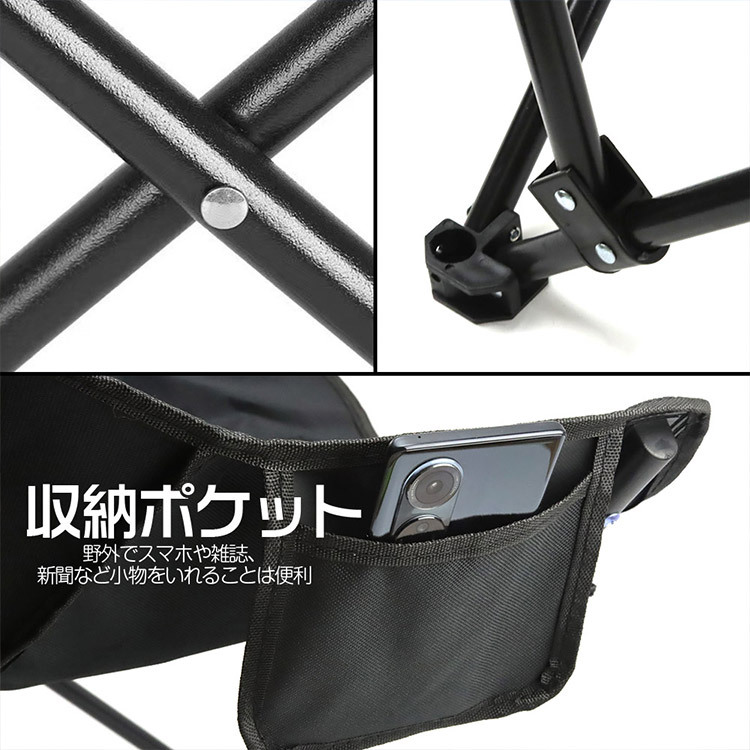 折りたたみキャンプチェア 軽量 アウトドア用 椅子 サイドポケット付き 収納袋付き 耐荷重120kg ピクニック ビーチ BBQ 旅行 ハイキング用