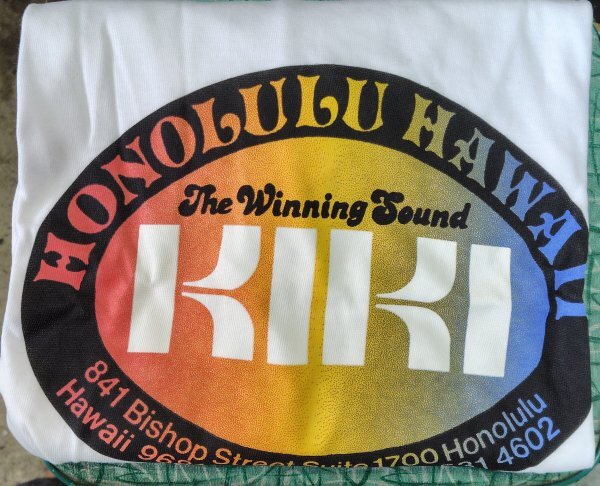 片づけ中に発見した KIKI HONOLULU HAWAIブランドの半袖Tシャツです。