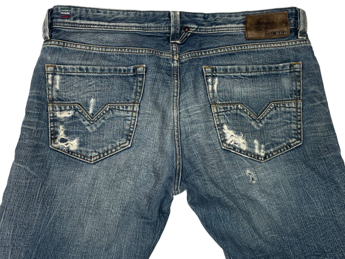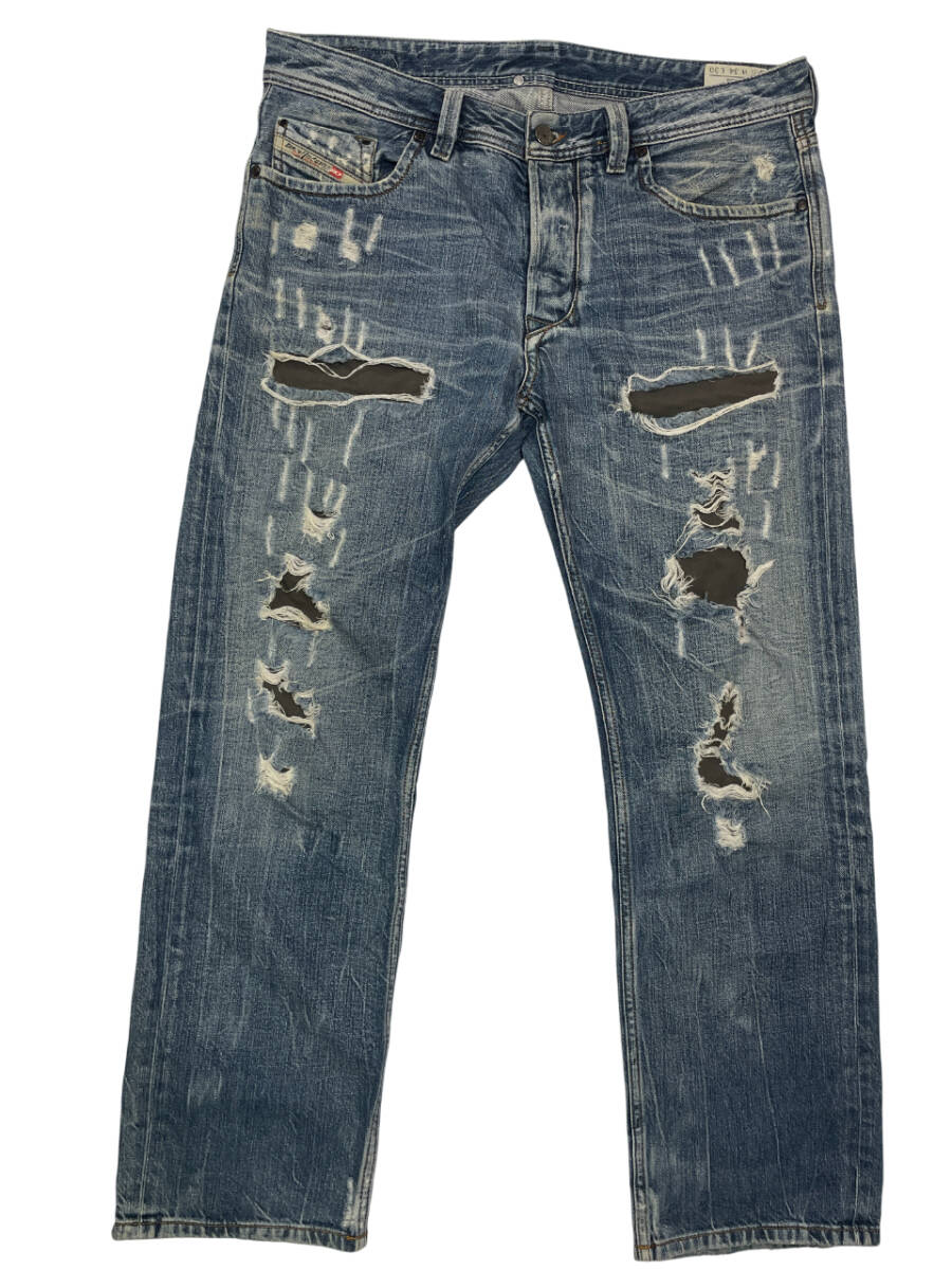 | ブランド:ディーゼル 型 番 :LARKEE カラー :インディゴ 状 態 :USED ディーゼル LARKEE ダメージ加工 デニムパンツ です。 大胆なダメージ加工、リペア加工を施したパンツで、フロントのダメージ部分は当て布があてがわれ、肌が露出しないリペアが行われております。 状態の良い品です。お探しの方お勧めの一品です。 ■サイズ:製品表記 W34 ■サイズ:実寸(平置き) ウエスト 46.5cm (×2=約93cm) W36相当 股 上 76.0cm 股 下 25.0cm もも幅 31.5cm すそ幅 21.5cm | ||