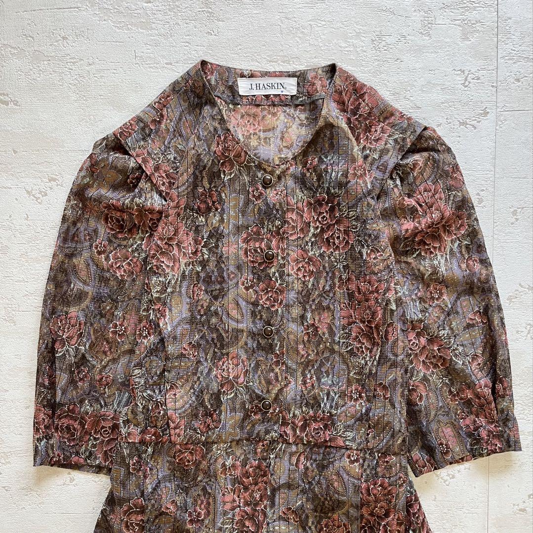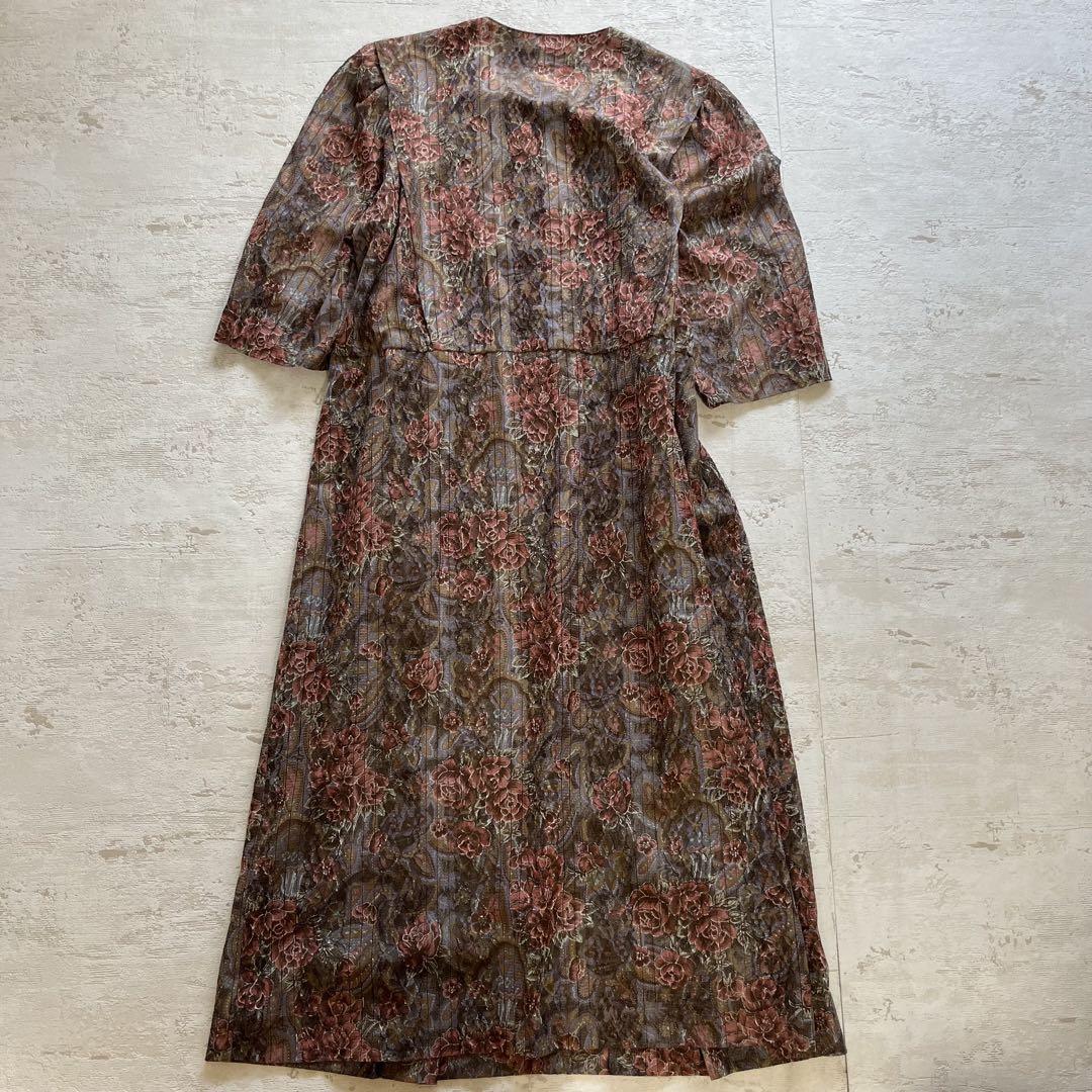 【レトロ可愛い】花柄総レースロングワンピース半袖デザイン個性派デザイン ae