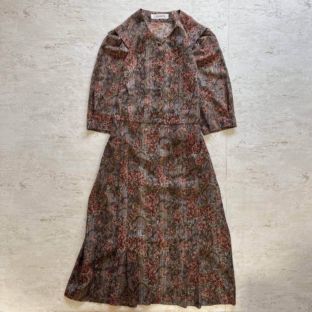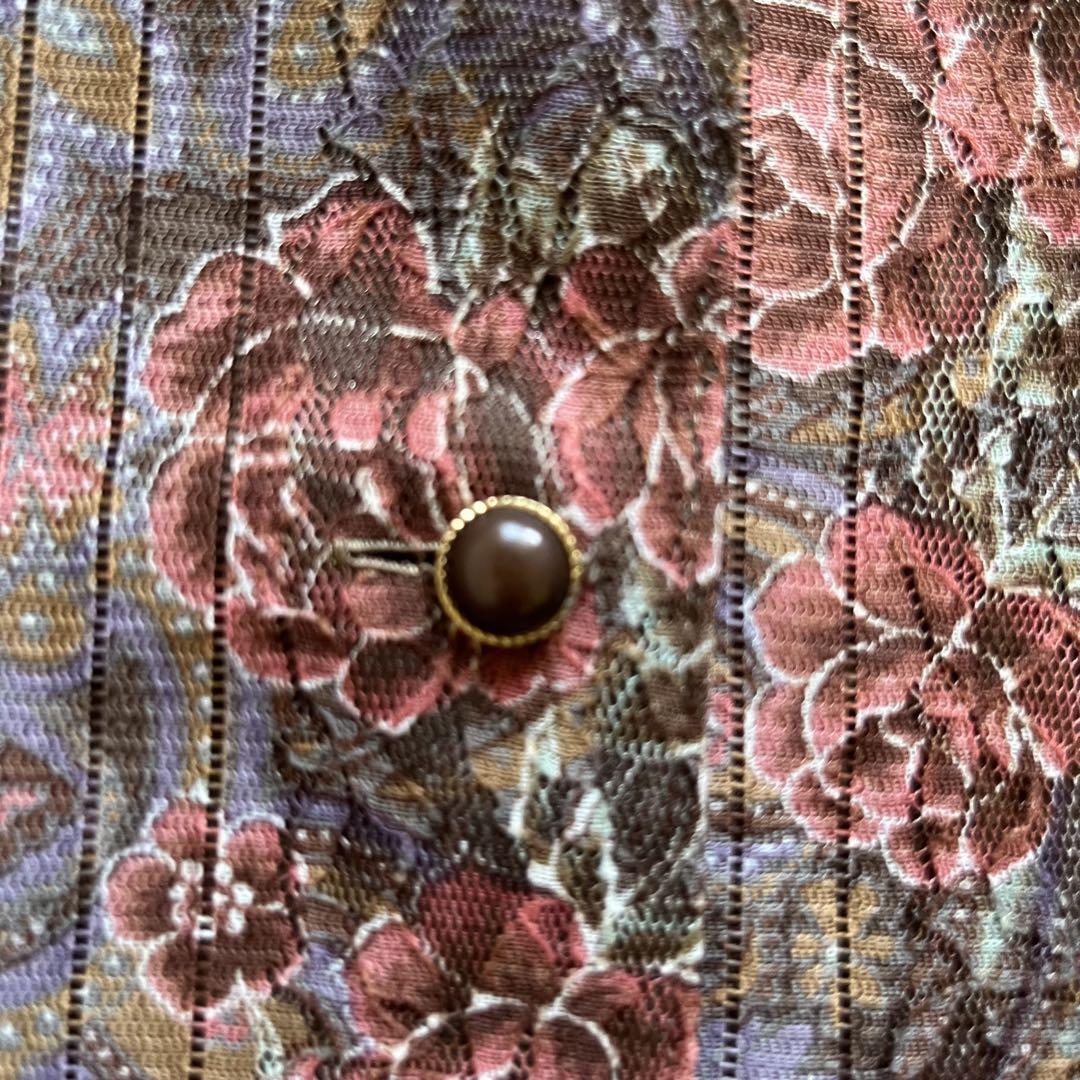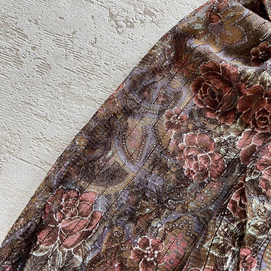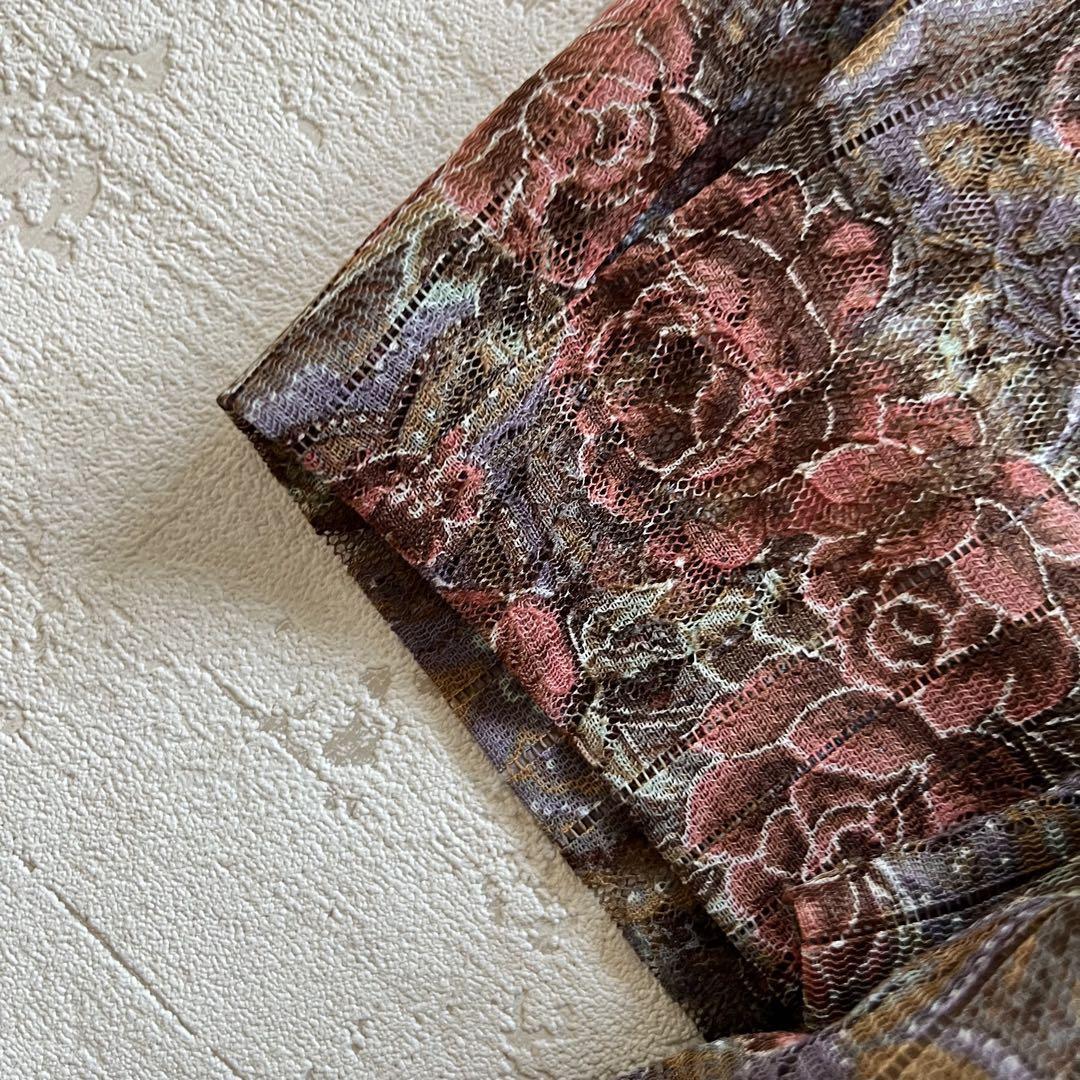レトロな花柄と透け感のある総レース生地が可愛いロングワンピースです。長袖デザインで季節の変わり目にも着やすく、フロントのアンティーク風ボタンがさりげないアクセントに。ウエストはゆるやかにシェイプされていて、体のラインをきれいに見せてくれます。カフェ巡りやデート、お出かけスタイルにぴったり。古着風の雰囲気が好きな方に人気のテイストです。1枚で主役級の存在感があり、写真映えも◎